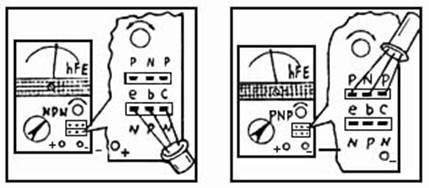 值大于60。T4为PNP型三极管,丈量要领见图2-7-10,万用表量程选PNP档,三极管的e、b、c插入PNP档的e、b、c中,不能搞错,(hFE)值大于60。