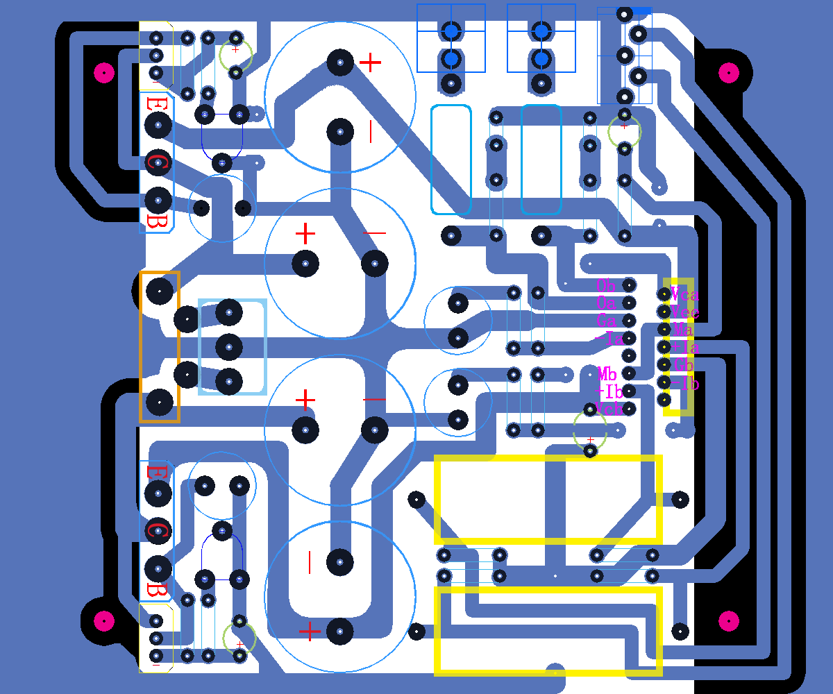按national提供的原理图,及自己的几盒子“废品”中有的元件做的LM4766功放。 简介: 带稳压电源的纯后级双声道功放,无音量控制(普通电位器噪音大,进口的对我来说太贵,功放是接电脑的,电脑有音量控制,功放有音量控制也就是多余了),功放IC使用LM4766,电源变压器用220V变双24V50W E型(为什么是50W的不够吧?没办法我就只有这个)。稳压电路用LM317+2SC5200、LM337+2SA1943(2SC500/2SA1943它不是用做功放后级吗?因为有一对“国产管”,用过觉得不好,就扔在一边了,用得着还是别浪费)。 先说功放部分的元件选择如下图: 此主题相关图片如下: Cin:4.7uF250VCBB Rin:47K Cs:2.2uF独石电容 Rm:2.2K 根据|Im|>0.5mA算出,两声道共用 Cm:100uF50V电解 Ri:1.15K DALE Rf:23.5K DALE Ci:4.7uF50V无极性电解 Rsn:2.2欧 Csn:0.1uF R:10欧 L:在R上绕了6T。 电源部分: 使用LM317,LM337组成可调稳压,用2SC5200、2SA1943做射极跟随扩流,本来想用national推进的推荐的扩流电路,不过我堆“废品”中找不到合适的东西。这个电路只能够做到稳压,不能过流保护,有一定的波纹抑制能力。 原理图如下: 此主题相关图片如下: 电容用了4只6800uF的国产电容,5元一只,便宜啊,因为板子位置不大(原因后说),所以也不能用大大水塘了,但有LM317/337在也过得去了。 电路板制作: 用PS画的,其它软件我不会 正面效果图: 此主题相关图片如下: 设计因为考虑了散热片的安装,板的大小定为12cmX10,方便装有机玻璃外壳(10CM的位置这刚好能排下4只6800uF的电容),两边2CM的位置就是要来按散热片。想了很久还是要用4条跳线,2条电源2条反馈(受自己制板技术限制,不能造太细的线)。带3.5立体声插座输入,两个莲花座位输出(这个是不是叫莲花座?)。 电路板走线图,用来打印在热转印纸上,再烫在铜板上,自己洗板。 此主题相赝计缦拢? 完成之后的图: 后面 此主题相关图片如下: 底 此主题相关图片如下: 带EMI滤波,一时找不到大的热缩管,没把220V的接头套上,使用时要小心电死 此主题相关图片如下: 此主题相关图片如下: 此主题相关图片如下: 继续3 此主题相关图片如下: 使用中 此主题相关图片如下: 实际使用: 第一次开机Rsn容易烧,可能是因为0.25W的耐压不够吧,又找不到大功率的,只好把Csn换小了,让它承受电压,也使Rsn不会有很大电流,但频率就高了很多,对消除放大器的高频自激没益; 感觉高音强了点,可能输出的电感不够大; 有点噪音,把反馈电阻换成DALE就没了,开始时用的是普通电阻; 把耳朵靠近喇叭会听到交流声,离远(0.5米吧)点就听不到了; 10X5X1.8的散热片也足够了,不听歌时只是温暖,听几个小时就烫手了。 最后做出来的感觉真好! 刚又做好了一台电流反馈功放。没有用稳压,电容量也少了很多。但是就没有一点杂音,而这太用了稳压也一样有杂音。 相位补偿电容电阻也是一样参数,但没有出现烧电阻现象。 LM4766用了一段时间发觉有些声音会变音,用电脑听MP3在开始和结尾时会出现很底的轰鸣声。 而且发热有时很厉害,但有时有没事。 综合上现象,这功放有很严重的问题。 估计是有高频自激,试过短路输入电容,反馈电容也是如此。另外接电源也是如此。 电路基本是抄national的,应该没问题。 那么原因可能就是出在电路板布线上了。 这个功放算是失败了。 (责任编辑:admin) |