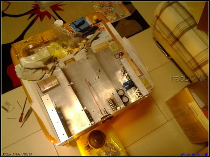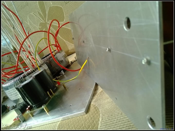 先搞的电源板,搞了一部分之后,发现悲剧了。![]() 上一些图片,以免有人拍砖“无图无真相” 背面该加粗的地方就加粗,有几年没摸烙铁了,焊点看着有点不舒服。 ![]() ![]() 背面的焊点和加粗 ![]() 606的机箱,应该是3个大部分,其中有一部分是整体浇铸而成的。 个人不欣赏606原机机箱的外观,于是打算自己另想办法。初步打算用2块铝板(430*350*6)上下夹住散热器,后板用3毫米铝板,侧板及面板用实木,面板加表头。 由于有430的宽,散热比较宽敞。机箱中间用2块3毫米铝板把电源部分与放大部分电磁屏蔽开来,一切设想目前按部就班正常进行中。 顺手画的,还好某人能看懂。 ![]() ![]() 持续更新,昨天的工作结果: ![]() 电源部分,挣扎良久,最后还是妥协了。 ![]() 不过电源板的切割结果,一眼就能看出楼猪工具原始简陋的文科生本色。像狗啃缺的。。。。。。 ![]() ![]() 喜欢用红圈处的小工具,方便实用不伤手,实乃居家旅行,杀人放火之利器也。 ![]() ![]() 关于变压器的初级次级电压及绕组参数的问题,有几个朋友PM问原因,现在集中在此回复一下各位兄弟: 1、关于初级为什么定为0-230-235-240V的原因:搬了新家,市电长期在235-242V左右,所以变压器的基本初级就定在235V,另外的230和240,一、可以结合自己当地市电电压的一般值及功放需要的电压做小范围的调整(具体到我的情况请看下第2点说明),二、在力所能及的电压范围内保证电路最初的设计值; 2、这2个变压器次级电压定制的初衷,不仅仅是为了606,而且必须考虑还要能适用于小甲及通用型的甲乙类功放。思索良久,才得出这样一个奇怪的绕组数据。这样的话,通过不同的组合方式,能够方便的得到2组16-0-16(5A)、一组0-18(5A)/一组16-0-16(10A)、一组0-18(5A)/一组32-0-32(5A)、一组0-18(5A)/一组0-82(5A)这4种次级电压组合方式。不过这样的话,对变压器的绕制(特别是次级绕组)就有比较严格的要求了,而且还要增加一定的费用; 3、若对2中的4组次级绕组的电压还不满意,那么可以根据当地的市电电压,结合接不同的初级绕组抽头来提高或者降低次级电压(很小范围内的调整),比如自己觉得16-0-16不满意,略低了些,则把初级接0-230V抽头(市电为240),这样整流滤波出来的次级电压就会略高一些,不过这样能调整的范围很小很小,次级电压越低,可调整的范围就越小。 上述是这个奇怪次级绕组数据最终能出来的原因,没什么其他的玄机和奥妙(非XX洗衣粉植入广告)在内。 牛牛标称功率: ![]() 牛牛整体: ![]() 牛牛细节,直径: ![]() #p#分页标题#e# 牛牛整体: ![]() 牛牛细节,高度: ![]() 牛牛测试方法: ![]() 搞了一些质量还过得去的小东西 ![]() ![]() ![]() ![]() ![]() 这样一来,以后更换保险管也就比较方便了。 ![]() 还有一部分小东西、小玩意在路上拼命奔跑 另外寻觅了一款插针,好嘛,我承认,悲剧又来了,插针太大,孔太小。总么办?扩吧,别人都去紧缩,于是俺只好扩充。 手术过程就不上图了,血腥暴力,来个完成图。 焊接在板上的插针 #p#分页标题#e# ![]() 套上套套的插针 ![]() ![]() 其实,DIY就是痛并快乐着的过程,慢慢享受吧。5个小时,只做了几根线,这效率,简直弱爆了。BS自己一个,先。 ![]() ![]() ![]() ![]() ![]() ![]() ![]() ![]() 还是悲剧,总是悲剧,老眼昏花,把交流双9V串起来接进表头驱动板,直接烧爆滤波。还好发现及时,只有烟木有花,又总么办? 翻吧,领导下班回家:你娃娃又在搞啥子? 答:找感冒药。 问:今天真乖,俺俩心有灵犀呀,嫩咋晓得我感冒了? 答: ![]() 只好出去买3个9。 翻箱倒柜,还是有收获的,不过个头太大,将就着用吧。 ![]() 漂亮的表头啊,赞一个,啧啧啧。 ![]() 现场合影,电源带滤波测试,交流81.5进,直流112出,正极对浮地58V,浮地对负极54V,不晓得正确与否,懒得管了,收工觉觉。#p#分页标题#e# ![]() 不知道其他的606制作者们是怎么处理PCB板上GND点与电源地和喇叭地这二者关系的,一直没见着这方面的图片与文字描述。 左右思量,无法决断。迷茫间,元芳说:大人,这事得一分为二来看待。 我勒个去,正点!于是打算利用PCB板上的GND点一分为二,一个套套接2根线,一到电源地,一到喇叭地。 理想很丰满,现实很骨感。到这个时候,2毫米的套套太小,容纳不下一根1.5毫米和一根2毫米的线,各剥一半吧,前车之鉴,很可能从焊接处断裂。旁边就是电源,到时候可能不仅仅是烟花,应该还有音箱玩完。看来,元芳也不是万能的,总么办?这是个问题。 最后看到R33上面的这个坑,OK,有办法了,直接把这个坑打通,上针。看来当初这坑填得确实冤啊! 出错了。 ![]() 由于当初填了坑,打洞的时候一激动,没把坑里的焊锡去除干净,导致打洞位置严重漂移偏离,打断了挨着的近3毫米宽的PCB线。 ![]() 木事,补救吧。用刀小心轻刮。看来PCB质量真的没得说。 ![]() ![]() 来看看正面漂移的后果。 ![]() 这张稍微清晰点 ![]() 怪怪的,多了个东西。大不同啊。这下搞定,不用去考虑一分为二的烦恼,一身轻松,插针上两个,想插哪个插哪个。 ![]() 其实我不说,也许大家看不出来。本来就应该是5根针。 ![]() ![]() 这个开关,很难找,一直对船型开关有着近乎偏执狂般的爱好。 ![]() ![]() 来看看吧,通电,开机,蛮有成就感的说,正负电压各跌了4伏,其他好象差不多? ![]() 一股脑全部上来,各个方位摆拍,搔首弄姿。 ![]() ![]() ![]() 连线试听,GO ON 电位器,这个没办法,倭的。 ![]() ![]() 一些花絮 ![]() ![]() ![]() ![]() ![]() ![]() ![]() 喇叭端子 ![