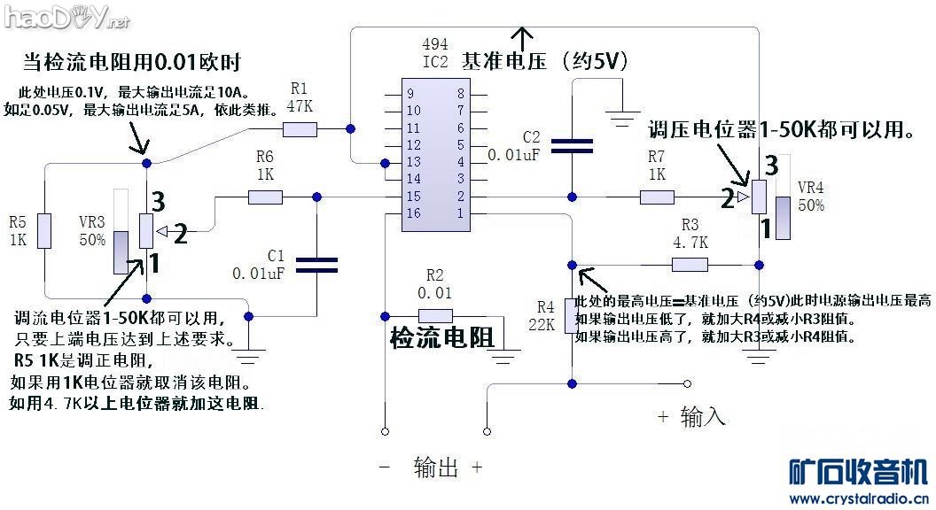 可调电源是DIY爱好者不可少的工具,现在很多人在用ATX电源改可调电源,虽然能改成功,但是,ATX电源绝大多数是用纸基板做的,焊盘容易老化虚焊,又容易自激(用着不放心)、接线又乱、稳定性差、无CV、CC指示、外观差等原因而放弃。本人用新制PCB板做的可调电源,结构紧凑、性能稳定、按图装配、一装就成、不会出现自激,感觉相当好,所以发出来供爱好者仿制。 一、电源指标 做了多种电压的版本,有不改变压器的二种电源,即0-25V和0-46V,还有改变压器和重绕变压器自动切换高低压接线的100V电源,现在放出制作最方便,线路最成熟不改变压器的二种电源,多了要乱。 1、电压0-25V可调、0-46V桥式整流可调。 2、电流25V的0-8A可调、46V的0-5A可调。 3、带CV、CC指示。 4、输出波纹P-P在50毫伏以下。 5、有缓开机功能。 二、电源材料 1、ATX电源一台。 2、多圈电位器二只(1K-20K都可以用)。 ![]() ![]() 3、电压电流表一只。 ![]() 4、0.01欧5W电阻一只。 5、输出滤波电容一只3300-6800UF都可以,25V用耐压35V,46V用耐压63V。 6、高速整流阳管一只,46V电源用(如MUR1620R),25V电源只要用原机的12V整流管(如1620CT),就是耐压200V高速管,绝对不能用耐压45V的肖特基管(如4045管)。 ![]() 三、电源原理图 1、以长城电源为版本的原理图,0-25V和0-46V通用,只要调整和加几个元件。 ![]() 2、辅助原理图。 ![]() 四、电源PCB 二种电压电源用一种PCB板。 ![]() ![]() ![]() ![]() 1、0-25V电源。 ![]() 2、0-46V电源与25V电源不同点。 ![]() ![]()
