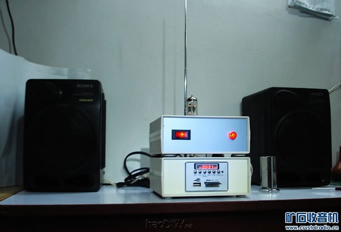 接上自制的MP3放音,声音很小,找到一件“Fiio”耳机放大器串于中间,声音正好!一口气听了三个小时,摸摸机壳仅有点微温。