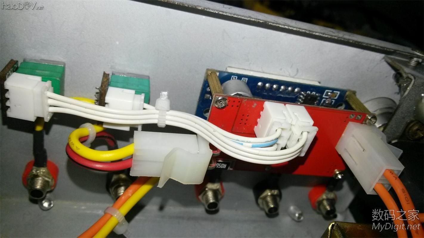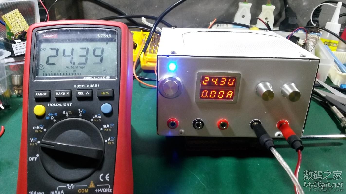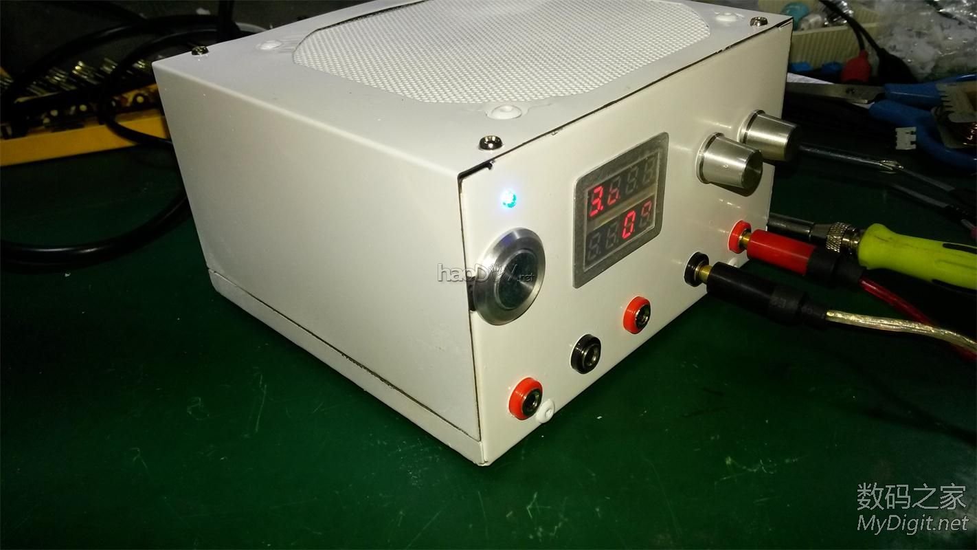 今天我看到这么好的材料准备做个可调电源! 先说说我的想法!杜绝高成本的去做这个电源!这样的话大家就失去本身想做的含义~ 就算我做出来了论友也只能看看!成本的限制大家会想去买个!那么就没有DIY的意义了! 制作方法简单实用!同时配件也比较便宜!大家都能做!简单一点!也好看! 原理!变压器的交流整流成直流然后用模块调压板进行调压! 希望我的这个DIY能成为大家比较好的参考资料! 效果图! ![]() ![]() 闪光拍的!不知道为什么数字看不清! 漂不漂亮大家说了算! ![]() 制作过程! 电源外壳都是清洗过的! ![]() ![]() 牛牛好像有200W废弃功放拆出来的! ![]() 输出端电压! ![]() 电源开关!不用开孔有个现成的! 开关也有现成的!从功放上面拆的! ![]() 切割好的一个支撑板 ![]() 装上按钮! ![]() 我觉得蛮好看的! ![]() 牛的底板切小一点! ![]() 套上! ![]() 放进去试试大小! 感觉牛占据了好大空间! ![]() 侧面来一张 ![]() 表头在路上先做盖子部分! 下面做盖子的通风口! 没办法装风扇没有足够的空间! 把这里崔平!! ![]() 全部OK! ![]() 找来一块旧的网子! ![]() 切割打磨!磨砂纸! ![]() 磨完明显好看多了! ![]() 开孔上铆钉固定! 全部OK ![]() 给他上个油漆 开始喷漆! ![]() 效果! ![]() 配件到了!先来个全家福! ![]() 这个是关键!来个特写! ![]() 选了好久!为了成本!为了论友! 33块大洋!0-30V可调!0-5A 双显示表一体才33!可以吧! 卖家这样介绍的!我觉得最大能承受应该是3A 因为模块都被打磨了!模块是XL4005! ![]() ![]() 淘宝链接http://item.taobao.com/item.htm?id=37036798110 他家卖的的东西比较全!电子元件几乎都有!论友可以买了表头后! 在买自己需要的配件!运费8块!为论友考虑! 测试电压! ![]() 测试电流! ![]() 感觉还不错!对于这个价位! 先做电源模块!因为我对电路比较菜鸟!做的不好大家多多指点! 因为我是双24V.要单的供电!用的全波整流! 电路图 ![]() ![]() 下面把模块的电位器引接出来! ![]() 数码表上面的接口用不到焊下来!! 要不等下妨碍装LED! ![]() 测试电位器的阻值!10K!等下买个10K精密电位器! ![]() 这个店铺也非常好!直接包邮比较划算!!买单独的配件推荐到这里买 http://ketianweism.tmall.com/index.htm?spm=a220o.1000855.w5002-5642812427.2.7CLXJ5 ![]() 焊接电位器出线端! ![]() 焊接LED电源指示灯! ![]() 热缩管包好! ![]() #p#分页标题#e#整流出的电压37V串联一个8.2K电阻! ![]() 准备开孔! 画的构思图! ![]() 先做led的孔! ![]() 热熔胶固定位置! ![]() 完美! ![]() 给表头开孔!这个孔不好打!板子厚! 切割老是跑!面板都切花了!没事! 最后做喷漆就好看了! ![]() 连续钻孔法 ![]() ![]() 切到能塞进去锯子宽度就用锯子来!省力! ![]() 打完孔的丑样!等下用锉刀打磨一下! ![]() 面板我用磨砂纸打磨了一下! 锉刀打磨过后是不是好漂亮! ![]() 表头放进去看看!大小不合适继续打磨! 直到大小合适为止! ![]() 裁剪一块透明面板!我用的是以前磁带的包装! ![]() 大小合适后把它跟表头粘在一起 ![]() 用的热熔胶! ![]() 装上去试试效果! ![]() 表头搞好了! 继续开电位器的孔! ![]() 然后开香蕉座的孔! ![]() 把这个本身电源多余的孔用铆钉堵住! ![]() 然后喷漆! 喷完漆的效果! ![]() 把电位器1组用不到的接头剪掉! ![]() 电位器焊好接口!我用的是2.54MM的3P自己做! 大家要是没有工具可以直接焊接连接线! ![]() 用钳子做杜邦线!这块给特写!多上几张图! ![]() ![]() ![]() ![]() ![]() 插上去试试! ![]() 装好电位器!香蕉座! ![]() 里面! ![]() 用做好的杜邦线链接表头! ![]() 连接好开关!看看效果! ![]() 感觉少了点什么!表头显得太简陋了!做个框框! 找了磁带机的外壳! ![]() 画好尺寸准备开孔打磨! ![]() 用电钻开孔锉刀打磨后效果!! ![]() 恩!这个效果对了! ![]() 开始做香蕉插座链接的铜鼻子! 用的压线钳! ![]() 压接后的效果! ![]() 包好热缩管! ![]() 连接好! ![]() 给变压器串一个保险!目前只有4A将就用吧!到时候在换! ![]() 热缩管包好! ![]() 给表头供电焊接5.08接头! ![]() ![]() 连接效果图! ![]() 用热熔胶固定! ![]() 把表头跟环牛供电接在一起就OK了! 给箱子贴上4个角垫! ![]() 插上电源线! ![]() 通电试试看情况对不对! ![]() OK一次成功! 给他装好外壳! ![]() 手机开的闪光看不到表数字! ![]() ![]() 测试! 先连个小马达试试! ![]() 用买的电压表试试看! ![]() 貌似不是很准啊!用高级表来吧! ![]() 测电压!电源24.3 表24.39 还非常满意! ![]() 测电流!电源2.07 表2.075 没话说了! ![]() 归位!! ![]() ![]() ![]() ![]() ![]() ![]() ![]() ![]() ![]() ![]() 蚊香OUT啦!自己DIY很漂亮的灭蚊灯,已全部完工! http://bbs.mydigit.cn/read.php?tid=885457 ![]() !!!!!!我的漂亮工作台!!!!!!! http://bbs.mydigit.cn/read.php?tid=896856 ![]() (责任编辑:admin) |