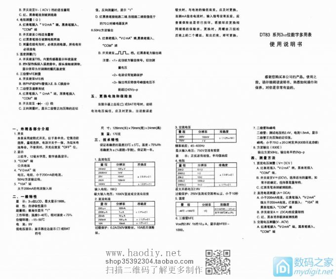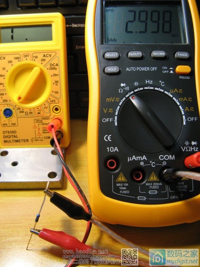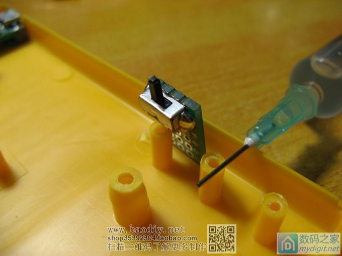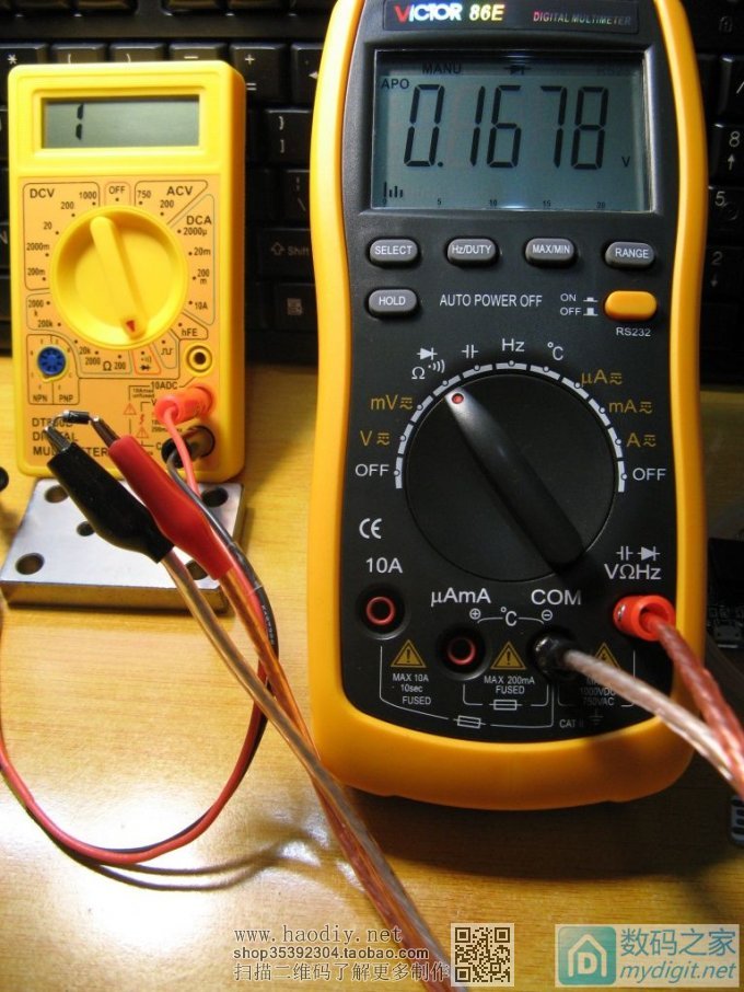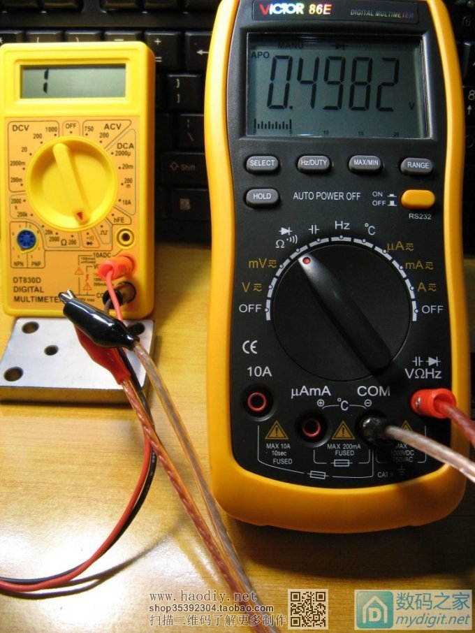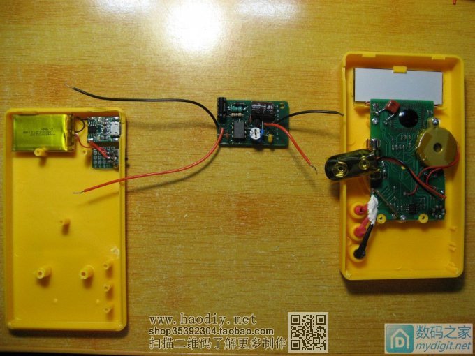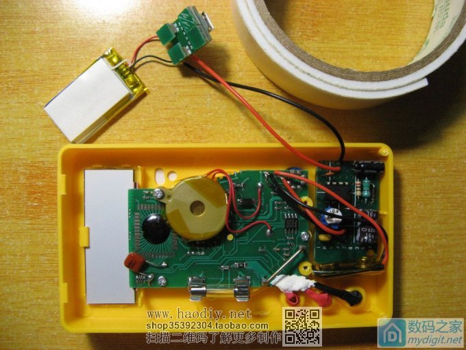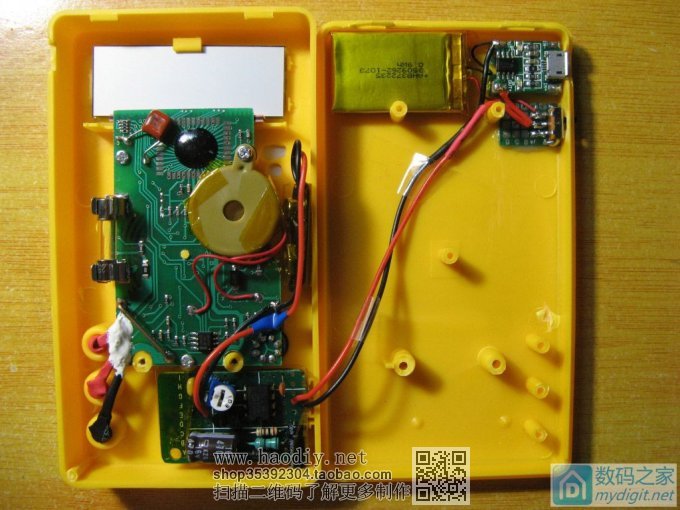 这次交作业又迟到了,小万用表是双11期间剁回来的,折腾完了也一直没时间发帖子,这双12都过了,赶紧把作业补交上,否则会被差评的 ![]() 1、8块钱包邮的小万用表,用手掂量一下,感觉就是好轻盈…… ![]() ![]() 2、貌似厂家的这个系列有好多种型号 ![]() 3、标签的这个贴法是几个意思,买烤鸭送鸭脖呗? ![]() ![]() 4、全部的东西都在这了,包装盒,表,说明书,表笔。 表到手后开机,没显示……再开机,没显示,坏的?再开机,有显示了……开机随机性的没显示,8块买的也不能这样吧?先拆开看看再说。 ![]() ![]() 5、后盖底部俩螺丝,顶部是俩卡扣固定,公的卡扣在A壳,母的在B壳,拆开后母卡扣就坏了一个,实在是太薄太脆了。 蜂鸣器就这么固定在那,出声的那面朝向PCB,怪不得蜂鸣档的声音很小,后面准备修正 右边的6F22电池看见了吧?奇葩的电池,后面有专门的叙述,此处暂且不表。 ![]() 6、找个中性笔前面的保护套 ![]() 7、把保护套截一小段下来,穿过螺丝拧在蜂鸣器和PCB之间,当做垫圈抬高蜂鸣器,防止和PCB的元件接触,同时把蜂鸣器翻过来,发生孔朝向B壳,声音会大了不少。 ![]() 8、广为诟病的插孔,很不安全的设计方式,后面会修正这个问题 ![]() 9、V片拍一张,有谁把V片搞乱了的,有图在此镇楼 ![]() ![]() 10、转起来会咔哒咔哒响的小球球,一旦掉地上找不到了就弄个大磁铁,趴在地板上打开强光手电,开启扫雷模式即可 ![]() ![]() 11、原厂的PCB就这样,比较脏,随后用酒精棉签清洗一遍,晾干,铜箔上再涂布一层WD-40,V片也同样处理一遍。 ![]() 12、这张我想说确实简洁,符合8块钱的风格 ![]() ![]() 13、液晶屏的触点也比较脏,跟前面PCB一样的方法处理干净 ![]() 14、先把3个插孔焊下来 ![]() 15、然后分段套上热缩管做保护 ![]() 楼下继续折腾 ![]() 16、原厂表笔孔的位置与电池之间的距离确实太小了,被大家吐槽也在意料之中 ![]() ![]() 17、后盖螺丝的固定柱,像我这样经常拆开、合上的用户,也不知道这种固定柱能用多久 ![]() ![]() 18、打胶覆盖绝缘 ![]() 19、704比较黏稠,绝缘做的可以,但这胶手工塑形不好弄,搬砖、砌墙、抹灰、刮大白技术考核一直不及格,所以外观也只能弄成这样了 ![]() ![]() 20、PCB上预留了200mA电流档的保险焊盘,清理基础,开始盖平房 ![]() ![]() 21、库存的0.2A的保险丝和保险丝管座 ![]() 22、平房盖好了 ![]() 23、房子基础一半挂在山崖外面,为的是让保险丝离左侧俩贴片远点 ![]() ![]() 24、改造的核心部分来了,以前自己DIY的基于34063的9V升压板、库存的225mAh的小锂电池,换过英锐芯4056ES和限流电阻的充电小板。因为锂电池容量比较小,所以充电电流也需要变小,自己把原来小板上的1.2K电阻换成了9.1K的,保证输出电流小于电池容量的1C。 34063的升压板DIY的链接在这里 http://bbs.mydigit.cn/read.php?tid=1323252 原版 http://bbs.mydigit.cn/read.php?tid=1376022 低纹波改进版 4056ES改造的帖子链接在这里 http://bbs.mydigit.cn/read.php?tid=1907966 悬赏贴情况特殊,请爬到32楼看 ![]() ![]() 25、一开始大致想弄成这样的布局,但实际完工后不是这样的 ![]() ![]() 26、先用小台锯割砖头,2.54的双面板和单面板都有,要的是洞洞板的边 ![]() 27、4个大砖头和4个小砖头 ![]() ![]() 28、小的砖头会堆叠在大的上面 ![]() 29、大的单层板表面先铺砂浆(堆锡) ![]() ![]() 30、小的双层板蹲在上面#p#分页标题#e# ![]() 31、然后用刀头反复加热单层板露出的那3段小焊盘,然后俩砖头就粘一起了 ![]() ![]() 32、一共做了四组 ![]() 33、然后把四组双面板(有焊盘的一面)与4056充电板再用焊锡粘在一起,就给4056充电板做好了支撑的基础 ![]() 34、小电池忘了是在哪买的,做的挺正规,出厂的时候正极都有热缩管保护 ![]() 35、各个部件预连接测试阶段 ![]() 36、Working……好消息 ![]() ![]() 37、在B壳上固定4056充电板,小板下面的四个脚涂满AB胶,一根棉签截成两段,一段顶住屁屁定位,一段限制边距 ![]() ![]() 38、AB胶凝固后就固定好了,四个洞洞板做的砖头就是要把4056小板抬高,让MicroUSB充电口可以正常的伸出来,而且4056ES芯片下面留有空间,充电期间可以更好的散热。 ![]() 39、固定完成后,充电插拔的时候,小板怎么也不会松动,全刚性连接 ![]() ![]() 40、纯手工开的充电口,用小锉刀一点一点打磨的,然后用小电钻带羊毛轮轻轻扫了一遍 ![]() 41、小电池固定在B壳的顶部,但这个固定柱有点碍事,就用小电钻带磨片,直接在柱子上抠了一个月牙槽,;锂电池底下用厚的泡沫双面胶粘在B壳上,然后卡在月牙槽里,好惬意 ![]() ![]() 42、给供电系统增加一个开关,用开关直接控制电池的正极是否接入系统,就是个简单暴力的电闸 ![]() ![]() 43、电闸也得打基础,小台锯切的洞洞板,特意从过孔切的,目的是留茬,只用其中一个,另外一个备用 ![]() 44、洞洞板左侧顶在固定柱上,右侧顶在壳边,洞洞板右侧留茬是因为板底要涂AB胶,茬口里也会灌AB胶,凝固之后留茬的位置在开关拨动时,整体防移动能力会更好 ![]() ![]() 45、把三脚开关焊接到小板上,两侧堆锡加强 ![]() 46、例行的打预防针,这类拨动开关时间一久触点就容易氧化,未雨绸缪,先给开关灌上半斤WD-40再说 ![]() ![]() 47、开关的小孔,也是纯手工打磨的,好费力,也不是太圆润,听说有种机器叫盾构机,打出来的孔特别圆,哪位大哥知道有包邮的卖吗? ![]() ![]() 48、开关小板底下拉毛,准备上AB胶粘合 ![]() 49、粘合的时候,AB胶会被挤进洞洞板的过孔