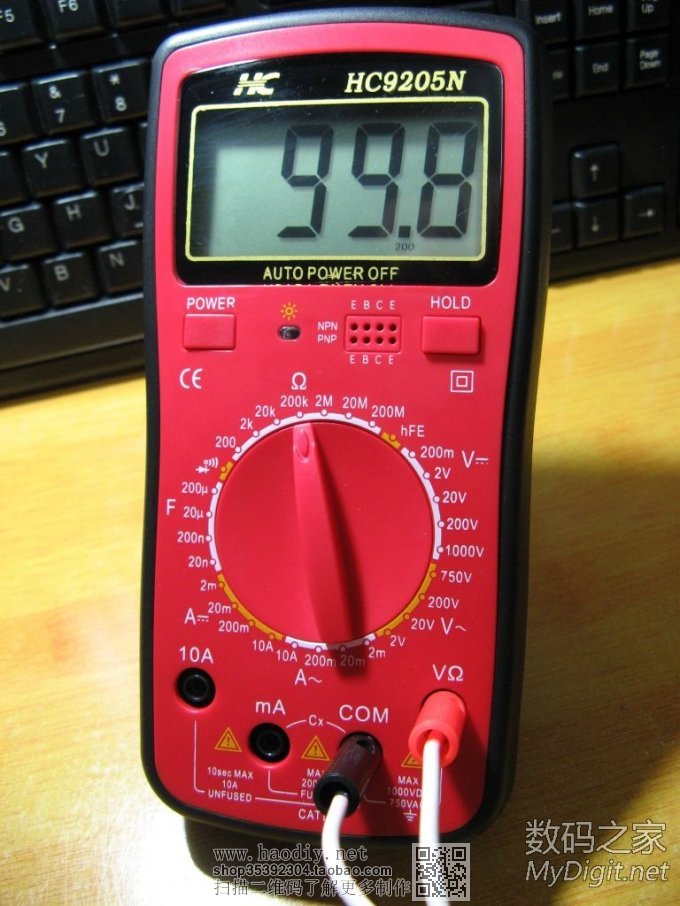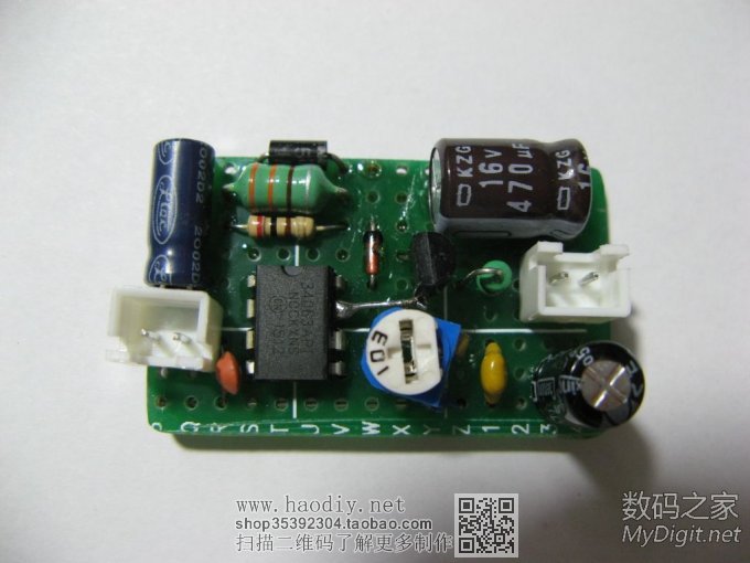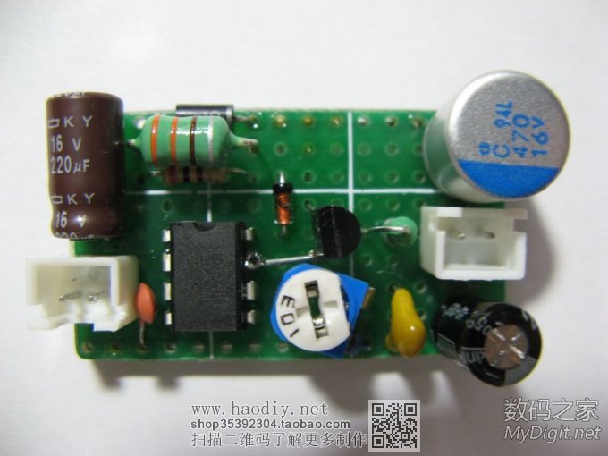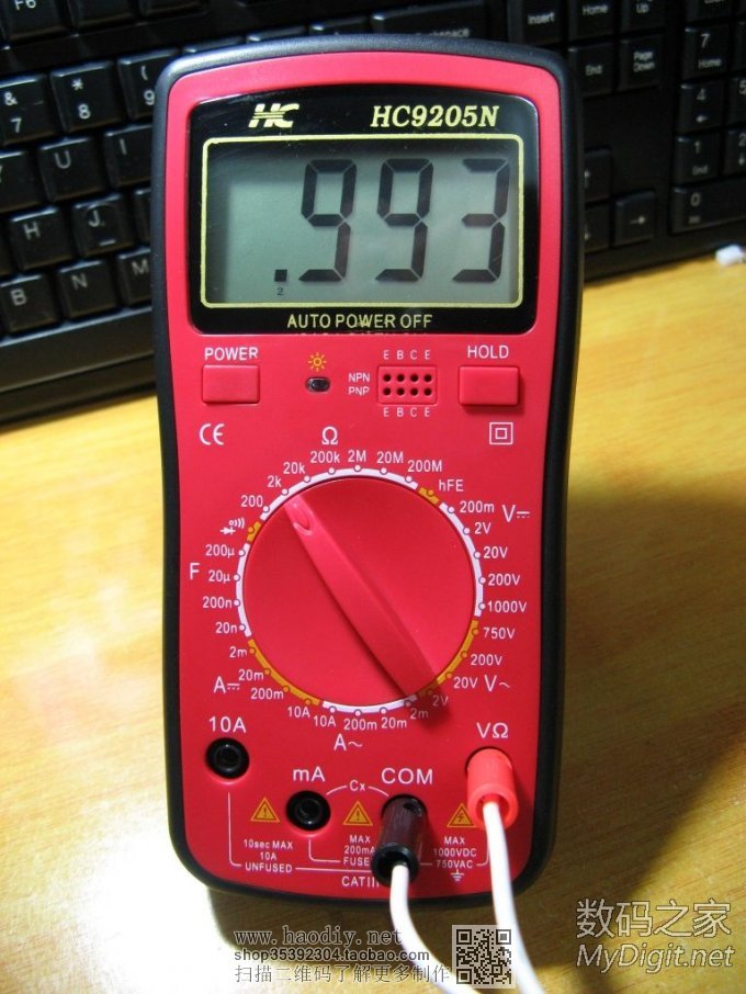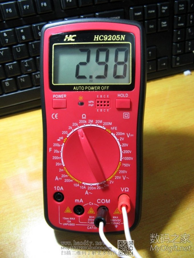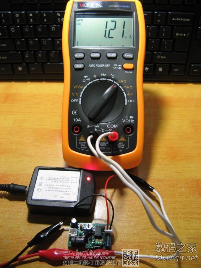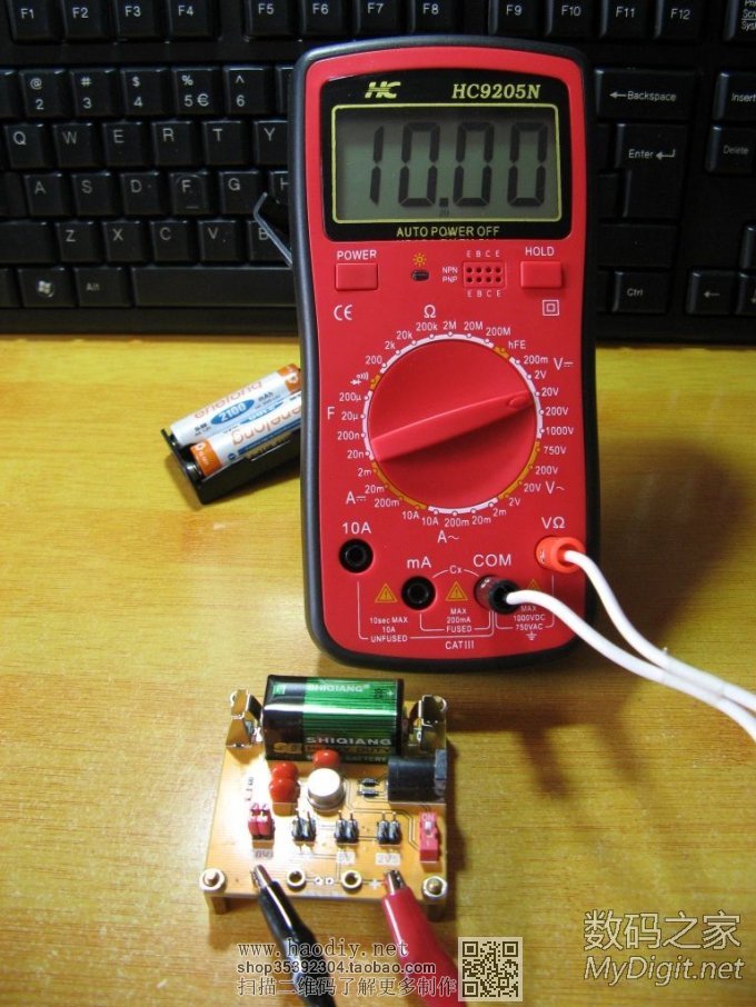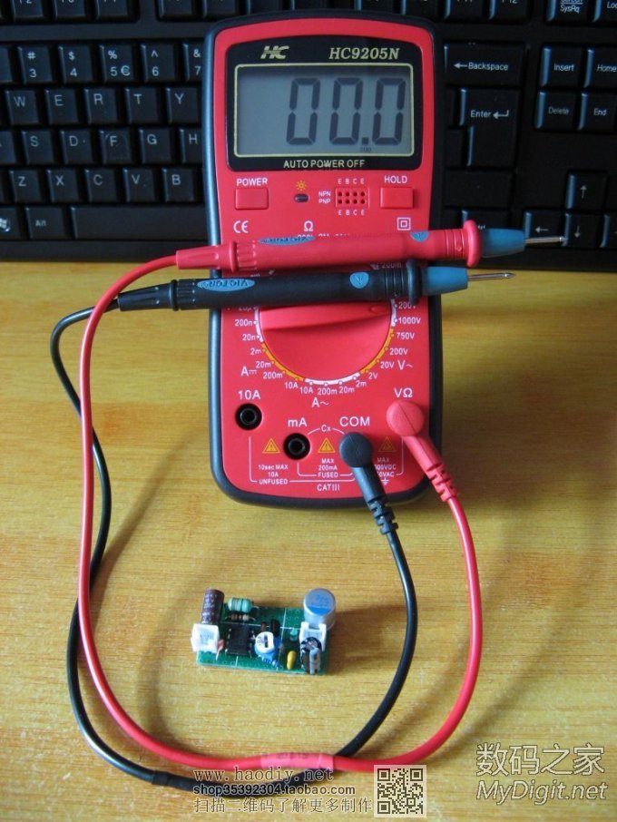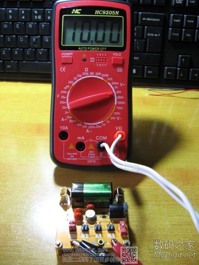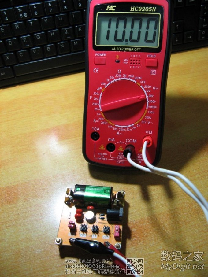 Tips:本帖比较长,文字超过6000字,图片总共108张,希望各位朋友有点心理准备。 ![]() 前言: 发这个帖子的原因说起来有点话长,之前曾给自己的优利德UT33D改造9V升压板+锂电池供电,我的朋友看到之后也很喜欢,本来要送他一套升压板,但他坚持要自己DIY,以证明他宝刀不老。 ![]() 朋友回去之后按图索骥改造了他的万用表,改造完成之后万用表测量精度什么的倒是正常,但却有个奇怪的现象:当万用表蜂鸣档短路的时候,蜂鸣器会发出连续有规律的“嘀嘀嘀”的电流声,换成6F22电池后声音消失,所以问题可能出在DIY的升压板上了。 ![]() 朋友拿着表和升压板过来让我帮忙看看,说如果是表的问题就帮他买块新的万用表,他确实很想用锂电+升压供电(他的电池消耗比我厉害);如果是升压板的毛病就找找原因想想办法解决问题。于是我就把他DIY的升压板安装到我的UT33D上,读数什么的都正常,而蜂鸣档短接的时候确实有电流声但是比较微弱,但在朋友的万用表上那电流声简直就像摩斯码发报机一样响亮。 ![]() 看来电流声和万用表的蜂鸣器也有一些关系,朋友于是让我帮忙买块新表,然后继续改造锂电升压,于是就有了下面这块万用表: ![]() ---------------------------------------华丽的分割线-------------------------------------- 正文开始: 1、国产的华创万用表,几十块钱的表,朋友看中这个了 ![]() ![]() 2、灯!等灯等灯~~这是一块红彤彤的大红表啊!话说要是结婚啊、本命年啊什么的,这大红表是最合适的了!! ![]() ![]() 3、全新的表,还没开封 ![]() ![]() 4、取出大红表,这颜色还真是喜庆啊!结婚啊、本命年啊必备的标配啊! ![]() 表的功能方面还是比较齐全的,朋友当时挑选的时候也是看中了这一点。 ![]() 5、随机附带的电池,日期是很新。 ![]() 6、先安上电池再说~电池仓盖的螺丝孔,做工还是简陋了,胜利的便宜表这地方至少也有个铜螺母吧。 ![]() ![]() 7、支架打开的样子,角度还是比较合适的。 ![]() 8、随机附带的表笔,做工只能说实在太一般了。 ![]() ![]() 9、香蕉头特写~卖自行车的不会给你配V8涡轮增压的,放心放心 ![]() ![]() 10、准备送给朋友一副新的短版表笔(自己截短的),用于替代原厂寒酸的表笔。 ![]() 11、嗯,这样搭配还像点样子嘛 ![]() ![]() 12、短接表笔看看显示如何 ![]() 13、然后上自己的AD584L电压基准测试,基准是用安捷伦34401A台表标定好的 2.5V时显示2.47V,这精度有点失望啊 ![]() ![]() 14、5V时显示4.97V ![]() 15、7.5V时显示7.45V ![]() 楼下继续精彩~ 16、10V时显示9.94V,电压档结果都偏低啊 ![]() ![]() 17、来看看电阻档的测试,用0.1%的金属膜电阻测试 1K电阻 ![]() 18、3K电阻 ![]() 19、10K电阻 ![]() 20、100K电阻,看来这表的电阻档也是各种不准啊 ![]() 21、不管了,先按数码之家的规矩,拆开看看再说,这里面到底啥样啊? ![]() 拨盘、V片、电路板(上面没啥元件),蜂鸣器,当然还有两个红彤彤的大按钮 ![]() 22、再看看背面,这里的元件还是有一点的 ![]() 23、有一个德仪的LM324,四运算放大器 ![]() 24、还有一个74HC14D,施密特反相器 ![]() 25、这个牛屎要特写一下,虽然被完整的覆盖了,但小小的内核依旧顽强的展示着自己的原始形状:我真的是方的!不是圆的! ![]() ![]() 26、这里要给厂家点个赞,这个贴片二极管是接在电池输入的负极上的,作用是防止不小心电池安装反了,阻止电流倒灌,防止烧表。 ![]() ![]() 27、PCB全景,右上角的电位器是校正电压档,右下角的电位器是校正电容档,左下角的还没弄清楚干嘛的,但肯定不是校正电阻档的,有可能是校正电流档的? 下面的保险是0.25A的,给电流mA档用的;和其他便宜表一样,10A当是没有保险的 ![]() #p#分页标题#e# ![]() 28、然后我就是用螺丝刀对着电位器,这拧拧,那拧拧,美其名曰:校准~ ![]() 校准后的电压档:10V ![]() 29、校准后的电压档:7.5V ![]() 30、校准后的电压档:5V ![]() 31、校准后的电压档:2.5V,电压校准只能这样了,这表电压档的线性不好,如果把2.5V档校准了,5、7.5、10V档就差了十万八千里了,所以只能舍弃2.5V档的精度了,保全其他档的精度。 ![]() 32、再来看看电阻档校准后的模样 校准后1K显示 ![]() 33、校准后3K显示 ![]() 34、校准后10K显示 ![]() 35、校准后100K显示 ![]() 这表的电阻档精度校准后也还是一般般,朋友看了之后摇摇头说:这表的精度还不如他原来那块老表呢,罢了罢了,送你了~ 于是这表就成我的了,但是一定得帮他解决掉蜂鸣档电流声的问题,于是就有了下面的这段故事: ---------------------------华丽的分割线------------------------------ 基于MC34063方案的9V升压板《低纹波改进版》 关于34063升压板的制作,我在之前的帖子里有过描述,这里再次写了一遍是对之前的文章做了必要的改进和补充,也算是小小的改进版吧 ![]() 36、老规矩,正式开工必先裁洞洞板,油性笔+直尺打线 → 勾刀预开V槽 → 一字螺丝刀扩V槽 →钳子掰开 ![]() 37、成品洞洞小板,边角用锉刀倒圆角,个人不太喜欢直角的PCB ![]() 38、小板特写,尺寸和孔数我都标记上了,方便大家裁板和计算尺寸 ![]() 39、国产的34063芯片,DC转换效率比不上新出的芯片,但它最大的特点就是:全新的便宜到只要2毛一个,旧的从路由器到车充里都能找到,一句话:成熟便宜而且容易找到。 ![]() ![]() 40、三极管 8550 ![]() 41、独石104电容、瓷片331电容 ![]() 42、10K可调电位器(使输出电压可调)、1K色环电阻、200R色环电阻 ![]() 43、9.1V稳压二极管(这个必须