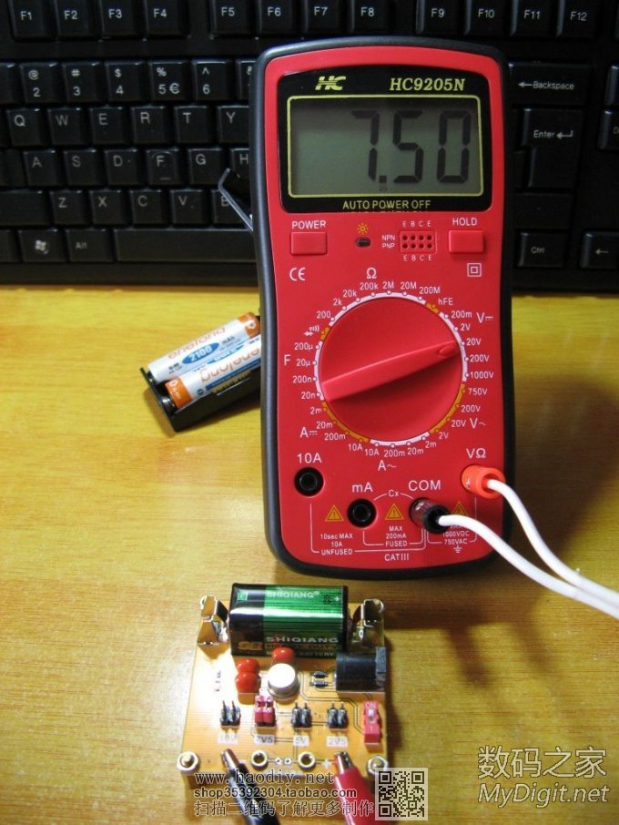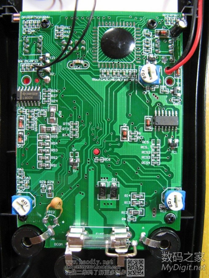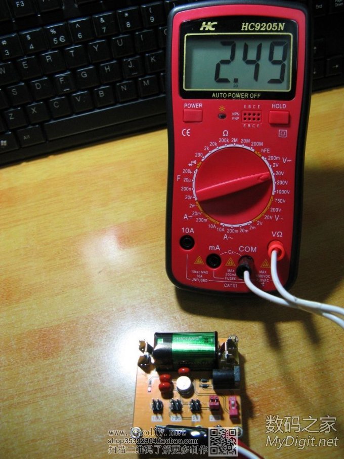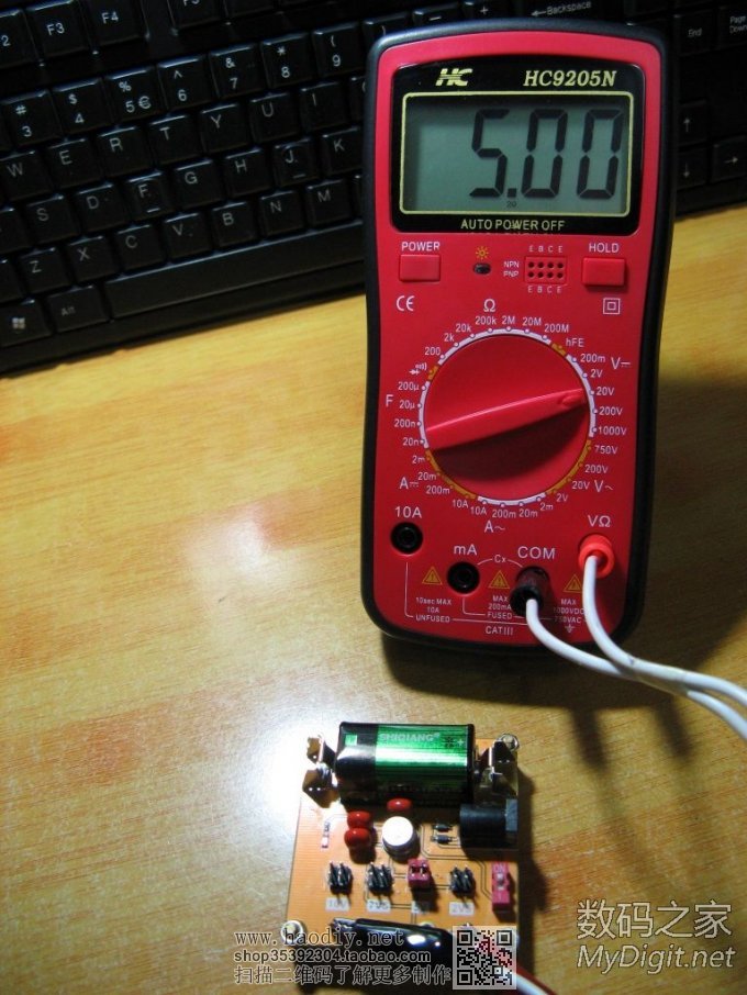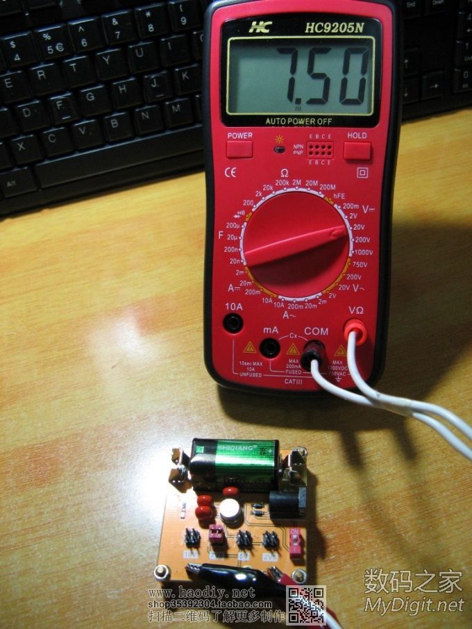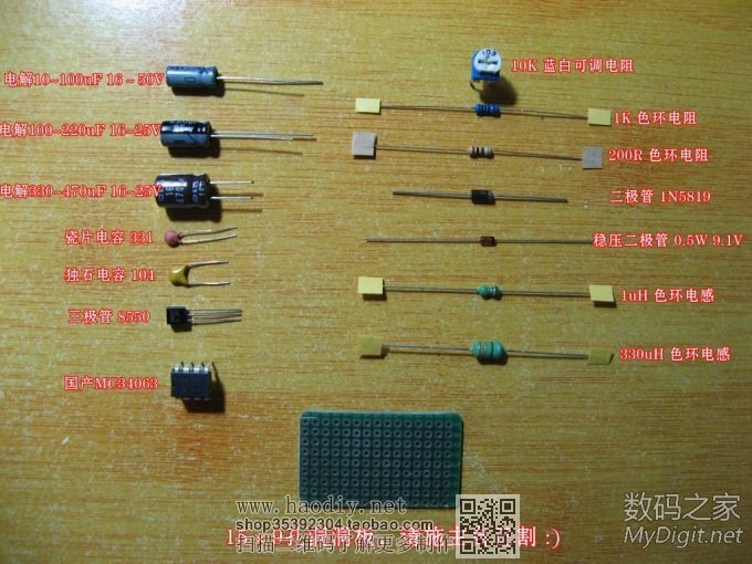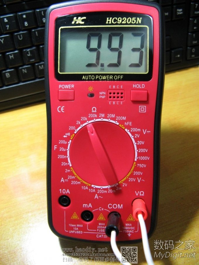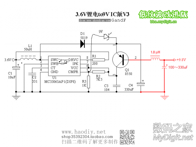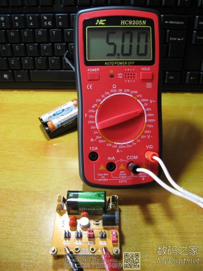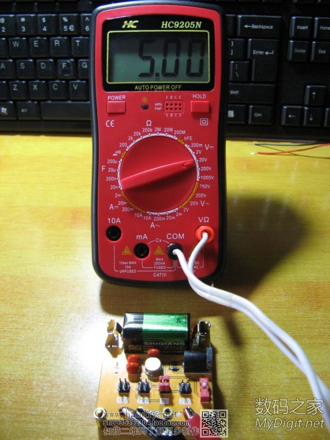 Tips:本帖比较长,文字超过6000字,图片总共108张,希望各位朋友有点心理准备。 ![]() 前言: 发这个帖子的原因说起来有点话长,之前曾给自己的优利德UT33D改造9V升压板+锂电池供电,我的朋友看到之后也很喜欢,本来要送他一套升压板,但他坚持要自己DIY,以证明他宝刀不老。 ![]() 朋友回去之后按图索骥改造了他的万用表,改造完成之后万用表测量精度什么的倒是正常,但却有个奇怪的现象:当万用表蜂鸣档短路的时候,蜂鸣器会发出连续有规律的“嘀嘀嘀”的电流声,换成6F22电池后声音消失,所以问题可能出在DIY的升压板上了。 ![]() 朋友拿着表和升压板过来让我帮忙看看,说如果是表的问题就帮他买块新的万用表,他确实很想用锂电+升压供电(他的电池消耗比我厉害);如果是升压板的毛病就找找原因想想办法解决问题。于是我就把他DIY的升压板安装到我的UT33D上,读数什么的都正常,而蜂鸣档短接的时候确实有电流声但是比较微弱,但在朋友的万用表上那电流声简直就像摩斯码发报机一样响亮。 ![]() 看来电流声和万用表的蜂鸣器也有一些关系,朋友于是让我帮忙买块新表,然后继续改造锂电升压,于是就有了下面这块万用表: ![]() ---------------------------------------华丽的分割线-------------------------------------- 正文开始: 1、国产的华创万用表,几十块钱的表,朋友看中这个了 ![]() ![]() 2、灯!等灯等灯~~这是一块红彤彤的大红表啊!话说要是结婚啊、本命年啊什么的,这大红表是最合适的了!! ![]() ![]() 3、全新的表,还没开封 ![]() ![]() 4、取出大红表,这颜色还真是喜庆啊!结婚啊、本命年啊必备的标配啊! ![]() 表的功能方面还是比较齐全的,朋友当时挑选的时候也是看中了这一点。 ![]() 5、随机附带的电池,日期是很新。 ![]() 6、先安上电池再说~电池仓盖的螺丝孔,做工还是简陋了,胜利的便宜表这地方至少也有个铜螺母吧。 ![]() ![]() 7、支架打开的样子,角度还是比较合适的。 ![]() 8、随机附带的表笔,做工只能说实在太一般了。 ![]() ![]() 9、香蕉头特写~卖自行车的不会给你配V8涡轮增压的,放心放心 ![]() ![]() 10、准备送给朋友一副新的短版表笔(自己截短的),用于替代原厂寒酸的表笔。 ![]() 11、嗯,这样搭配还像点样子嘛 ![]() ![]() 12、短接表笔看看显示如何 ![]() 13、然后上自己的AD584L电压基准测试,基准是用安捷伦34401A台表标定好的 2.5V时显示2.47V,这精度有点失望啊 ![]() ![]() 14、5V时显示4.97V ![]() 15、7.5V时显示7.45V ![]() 楼下继续精彩~ 16、10V时显示9.94V,电压档结果都偏低啊 ![]() ![]() 17、来看看电阻档的测试,用0.1%的金属膜电阻测试 1K电阻 ![]() 18、3K电阻 ![]() 19、10K电阻 ![]() 20、100K电阻,看来这表的电阻档也是各种不准啊 ![]() 21、不管了,先按数码之家的规矩,拆开看看再说,这里面到底啥样啊? ![]() 拨盘、V片、电路板(上面没啥元件),蜂鸣器,当然还有两个红彤彤的大按钮 ![]() 22、再看看背面,这里的元件还是有一点的 ![]() 23、有一个德仪的LM324,四运算放大器 ![]() 24、还有一个74HC14D,施密特反相器 ![]() 25、这个牛屎要特写一下,虽然被完整的覆盖了,但小小的内核依旧顽强的展示着自己的原始形状:我真的是方的!不是圆的! ![]() ![]() 26、这里要给厂家点个赞,这个贴片二极管是接在电池输入的负极上的,作用是防止不小心电池安装反了,阻止电流倒灌,防止烧表。 ![]() ![]() 27、PCB全景,右上角的电位器是校正电压档,右下角的电位器是校正电容档,左下角的还没弄清楚干嘛的,但肯定不是校正电阻档的,有可能是校正电流档的? 下面的保险是0.25A的,给电流mA档用的;和其他便宜表一样,10A当是没有保险的 ![]() #p#分页标题#e# ![]() 28、然后我就是用螺丝刀对着电位器,这拧拧,那拧拧,美其名曰:校准~ ![]() 校准后的电压档:10V ![]() 29、校准后的电压档:7.5V ![]() 30、校准后的电压档:5V ![]() 31、校准后的电压档:2.5V,电压校准只能这样了,这表电压档的线性不好,如果把2.5V档校准了,5、7.5、10V档就差了十万八千里了,所以只能舍弃2.5V档的精度了,保全其他档的精度。 ![]() 32、再来看看电阻档校准后的模样 校准后1K显示 ![]() 33、校准后3K显示 ![]() 34、校准后10K显示 ![]() 35、校准后100K显示 ![]() 这表的电阻档精度校准后也还是一般般,朋友看了之后摇摇头说:这表的精度还不如他原来那块老表呢,罢了罢了,送你了~ 于是这表就成我的了,但是一定得帮他解决掉蜂鸣档电流声的问题,于是就有了下面的这段故事: ---------------------------华丽的分割线------------------------------ 基于MC34063方案的9V升压板《低纹波改进版》 关于34063升压板的制作,我在之前的帖子里有过描述,这里再次写了一遍是对之前的文章做了必要的改进和补充,也算是小小的改进版吧 ![]() 36、老规矩,正式开工必先裁洞洞板,油性笔+直尺打线 → 勾刀预开V槽 → 一字螺丝刀扩V槽 →钳子掰开 ![]() 37、成品洞洞小板,边角用锉刀倒圆角,个人不太喜欢直角的PCB ![]() 38、小板特写,尺寸和孔数我都标记上了,方便大家裁板和计算尺寸 ![]() 39、国产的34063芯片,DC转换效率比不上新出的芯片,但它最大的特点就是:全新的便宜到只要2毛一个,旧的从路由器到车充里都能找到,一句话:成熟便宜而且容易找到。 ![]() ![]() 40、三极管 8550 ![]() 41、独石104电容、瓷片331电容 ![]() 42、10K可调电位器(使输出电压可调)、1K色环电阻、200R色环电阻 ![]() 43、9.1V稳压二极管(这个必须
