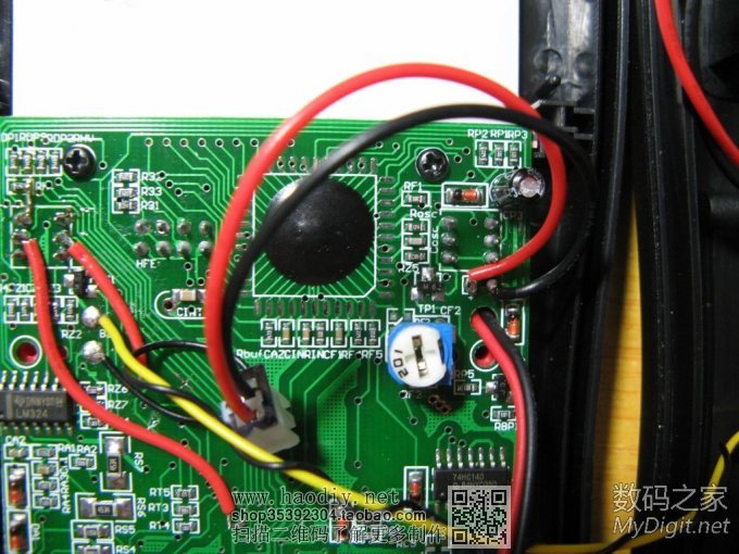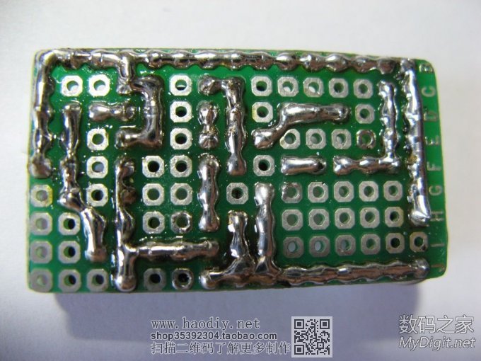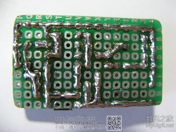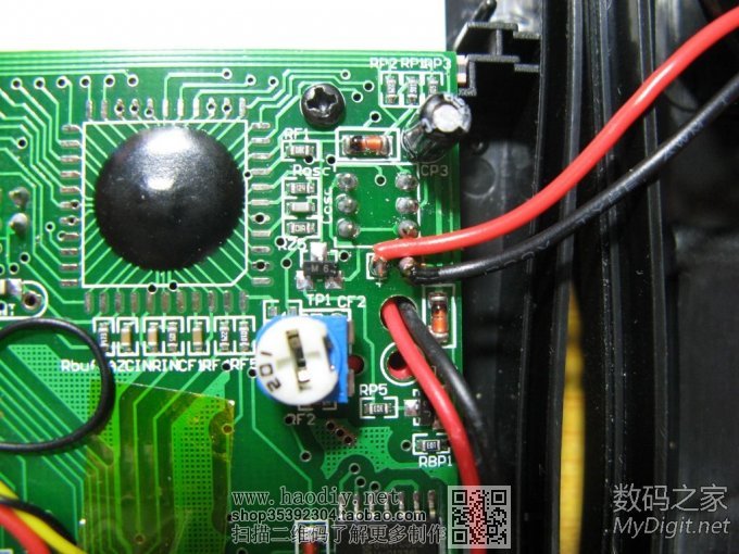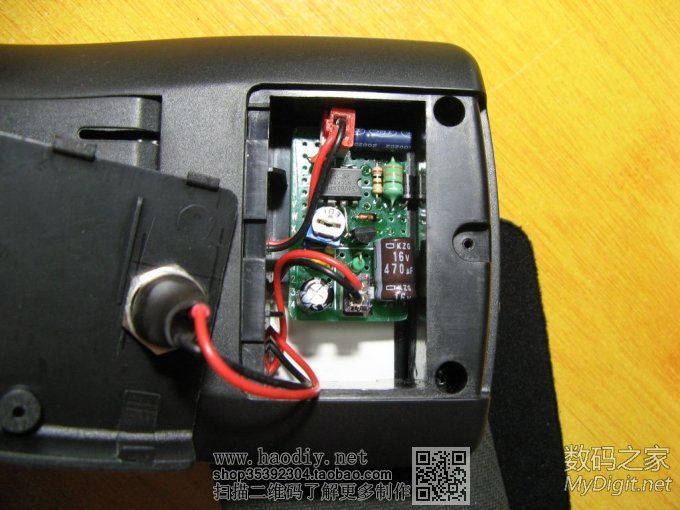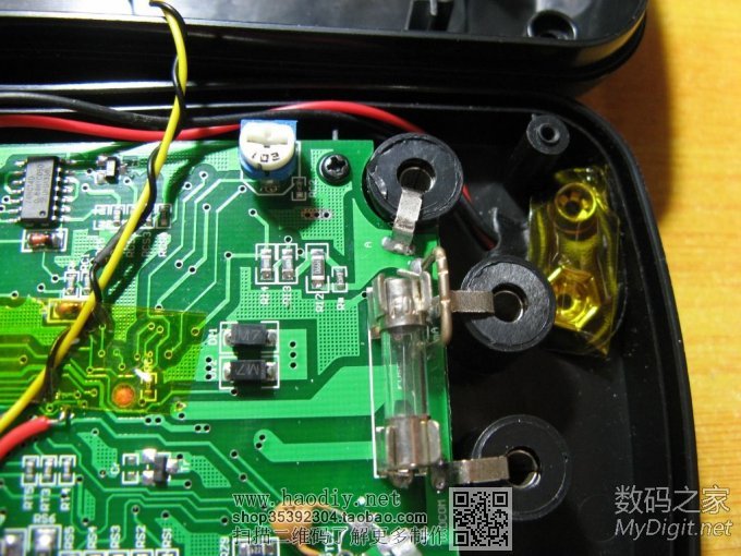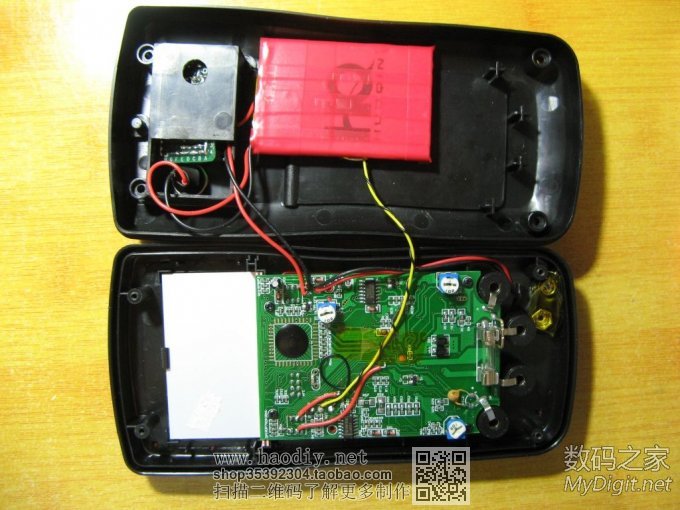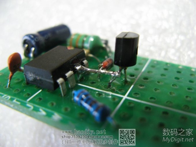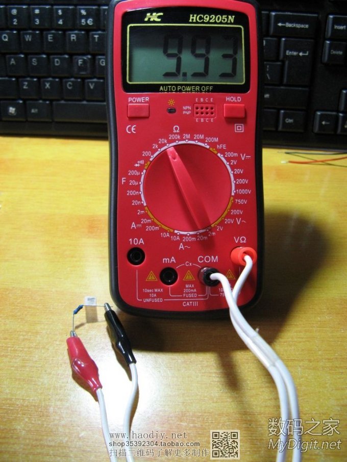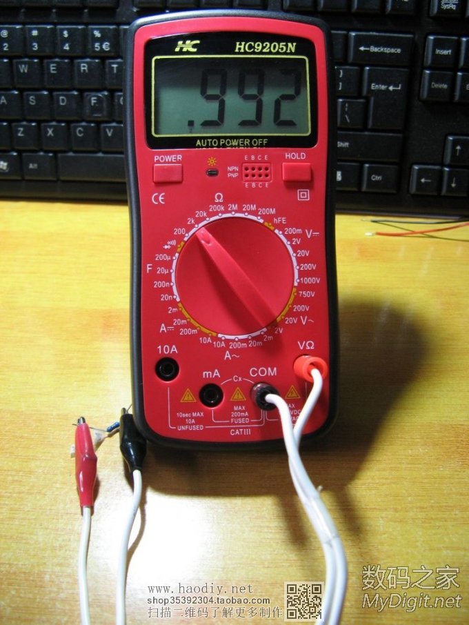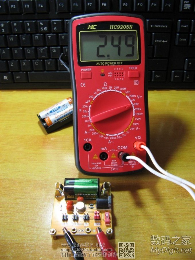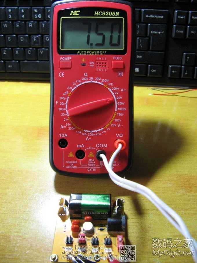 Tips:本帖比较长,文字超过6000字,图片总共108张,希望各位朋友有点心理准备。 ![]() 前言: 发这个帖子的原因说起来有点话长,之前曾给自己的优利德UT33D改造9V升压板+锂电池供电,我的朋友看到之后也很喜欢,本来要送他一套升压板,但他坚持要自己DIY,以证明他宝刀不老。 ![]() 朋友回去之后按图索骥改造了他的万用表,改造完成之后万用表测量精度什么的倒是正常,但却有个奇怪的现象:当万用表蜂鸣档短路的时候,蜂鸣器会发出连续有规律的“嘀嘀嘀”的电流声,换成6F22电池后声音消失,所以问题可能出在DIY的升压板上了。 ![]() 朋友拿着表和升压板过来让我帮忙看看,说如果是表的问题就帮他买块新的万用表,他确实很想用锂电+升压供电(他的电池消耗比我厉害);如果是升压板的毛病就找找原因想想办法解决问题。于是我就把他DIY的升压板安装到我的UT33D上,读数什么的都正常,而蜂鸣档短接的时候确实有电流声但是比较微弱,但在朋友的万用表上那电流声简直就像摩斯码发报机一样响亮。 ![]() 看来电流声和万用表的蜂鸣器也有一些关系,朋友于是让我帮忙买块新表,然后继续改造锂电升压,于是就有了下面这块万用表: ![]() ---------------------------------------华丽的分割线-------------------------------------- 正文开始: 1、国产的华创万用表,几十块钱的表,朋友看中这个了 ![]() ![]() 2、灯!等灯等灯~~这是一块红彤彤的大红表啊!话说要是结婚啊、本命年啊什么的,这大红表是最合适的了!! ![]() ![]() 3、全新的表,还没开封 ![]() ![]() 4、取出大红表,这颜色还真是喜庆啊!结婚啊、本命年啊必备的标配啊! ![]() 表的功能方面还是比较齐全的,朋友当时挑选的时候也是看中了这一点。 ![]() 5、随机附带的电池,日期是很新。 ![]() 6、先安上电池再说~电池仓盖的螺丝孔,做工还是简陋了,胜利的便宜表这地方至少也有个铜螺母吧。 ![]() ![]() 7、支架打开的样子,角度还是比较合适的。 ![]() 8、随机附带的表笔,做工只能说实在太一般了。 ![]() ![]() 9、香蕉头特写~卖自行车的不会给你配V8涡轮增压的,放心放心 ![]() ![]() 10、准备送给朋友一副新的短版表笔(自己截短的),用于替代原厂寒酸的表笔。 ![]() 11、嗯,这样搭配还像点样子嘛 ![]() ![]() 12、短接表笔看看显示如何 ![]() 13、然后上自己的AD584L电压基准测试,基准是用安捷伦34401A台表标定好的 2.5V时显示2.47V,这精度有点失望啊 ![]() ![]() 14、5V时显示4.97V ![]() 15、7.5V时显示7.45V ![]() 楼下继续精彩~ 16、10V时显示9.94V,电压档结果都偏低啊 ![]() ![]() 17、来看看电阻档的测试,用0.1%的金属膜电阻测试 1K电阻 ![]() 18、3K电阻 ![]() 19、10K电阻 ![]() 20、100K电阻,看来这表的电阻档也是各种不准啊 ![]() 21、不管了,先按数码之家的规矩,拆开看看再说,这里面到底啥样啊? ![]() 拨盘、V片、电路板(上面没啥元件),蜂鸣器,当然还有两个红彤彤的大按钮 ![]() 22、再看看背面,这里的元件还是有一点的 ![]() 23、有一个德仪的LM324,四运算放大器 ![]() 24、还有一个74HC14D,施密特反相器 ![]() 25、这个牛屎要特写一下,虽然被完整的覆盖了,但小小的内核依旧顽强的展示着自己的原始形状:我真的是方的!不是圆的! ![]() ![]() 26、这里要给厂家点个赞,这个贴片二极管是接在电池输入的负极上的,作用是防止不小心电池安装反了,阻止电流倒灌,防止烧表。 ![]() ![]() 27、PCB全景,右上角的电位器是校正电压档,右下角的电位器是校正电容档,左下角的还没弄清楚干嘛的,但肯定不是校正电阻档的,有可能是校正电流档的? 下面的保险是0.25A的,给电流mA档用的;和其他便宜表一样,10A当是没有保险的 ![]() #p#分页标题#e# ![]() 28、然后我就是用螺丝刀对着电位器,这拧拧,那拧拧,美其名曰:校准~ ![]() 校准后的电压档:10V ![]() 29、校准后的电压档:7.5V ![]() 30、校准后的电压档:5V ![]() 31、校准后的电压档:2.5V,电压校准只能这样了,这表电压档的线性不好,如果把2.5V档校准了,5、7.5、10V档就差了十万八千里了,所以只能舍弃2.5V档的精度了,保全其他档的精度。 ![]() 32、再来看看电阻档校准后的模样 校准后1K显示 ![]() 33、校准后3K显示 ![]() 34、校准后10K显示 ![]() 35、校准后100K显示 ![]() 这表的电阻档精度校准后也还是一般般,朋友看了之后摇摇头说:这表的精度还不如他原来那块老表呢,罢了罢了,送你了~ 于是这表就成我的了,但是一定得帮他解决掉蜂鸣档电流声的问题,于是就有了下面的这段故事: ---------------------------华丽的分割线------------------------------ 基于MC34063方案的9V升压板《低纹波改进版》 关于34063升压板的制作,我在之前的帖子里有过描述,这里再次写了一遍是对之前的文章做了必要的改进和补充,也算是小小的改进版吧 ![]() 36、老规矩,正式开工必先裁洞洞板,油性笔+直尺打线 → 勾刀预开V槽 → 一字螺丝刀扩V槽 →钳子掰开 ![]() 37、成品洞洞小板,边角用锉刀倒圆角,个人不太喜欢直角的PCB ![]() 38、小板特写,尺寸和孔数我都标记上了,方便大家裁板和计算尺寸 ![]() 39、国产的34063芯片,DC转换效率比不上新出的芯片,但它最大的特点就是:全新的便宜到只要2毛一个,旧的从路由器到车充里都能找到,一句话:成熟便宜而且容易找到。 ![]() ![]() 40、三极管 8550 ![]() 41、独石104电容、瓷片331电容 ![]() 42、10K可调电位器(使输出电压可调)、1K色环电阻、200R色环电阻 ![]() 43、9.1V稳压二极管(这个必须
