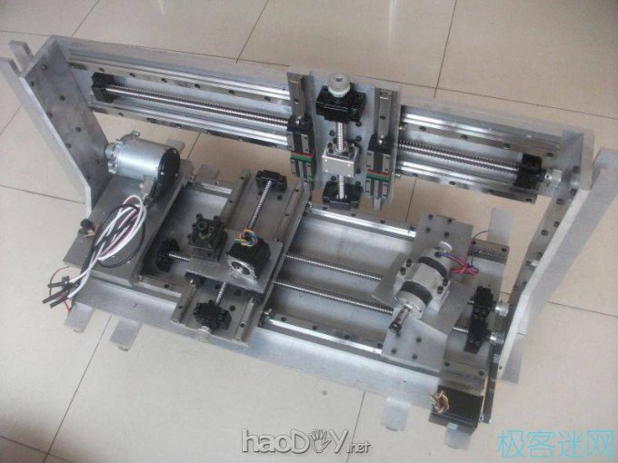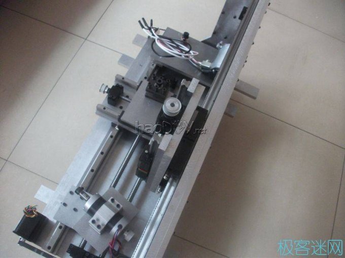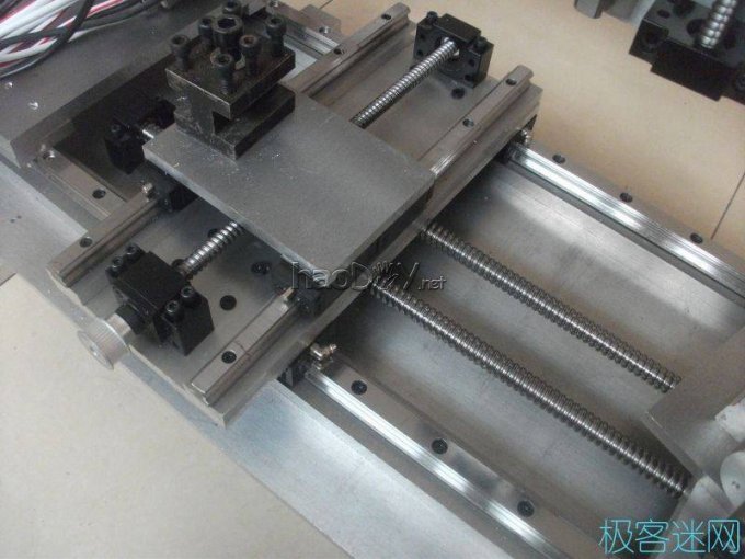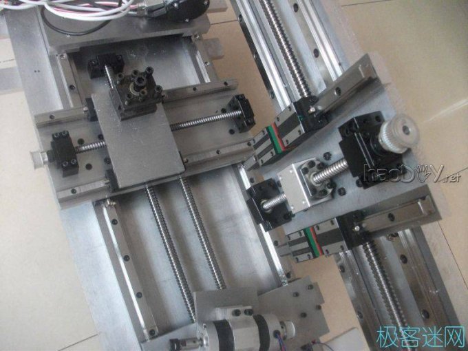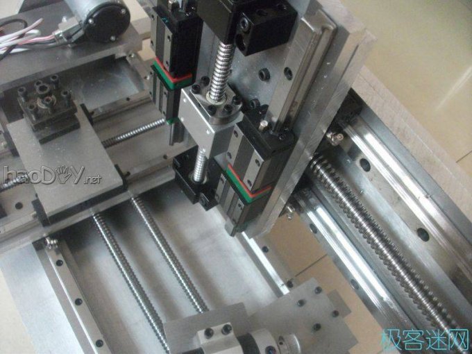 紧接上一篇http://www.geekfans.com/thread-82673-1-1.html 楼主设计的CNC定义九轴五联动,包括6个移动轴还3个旋转轴,为了下面好表述现在将各移动轴定义标上 X1 X2 Y1 Y2 Z W ![]() 不少寅都说控制部分难,机械部分简单,楼主一开始也是这么想的,但是亲身体会过才知道,机械部分工程浩大,钻孔一钻钻几个小时,拼接也费了好大力气,还有苦逼的调试:打表偏右,往左移一点,打表又偏左... 好处倒是可以磨练坚强意志 ■■■■■■■■■■■■■■■■■■■■■■■■■■■■■■■■■■■■■■■■■■■■■■■■■■■■■■■■■■■ 不废话了,开始表演: 最终设计本来动龙门Y1轴是4根500MM长20方轨共8个滑块,由于以前设计,楼主有2根400MM长20方轨。其实4根导轨主要是外侧两根受力,楼主一想,何不把Y1轴阉割阉割呢,于是楼主只买了2根500MM长导轨+2个滑块,然后互换一下。 这一阉割居然省了100多块 ![]() 黑色滑块的是楼主原有的,这次没确认好颜色店家发的是红绿的滑块,其实规格是一样的。 ![]() ![]() 顺带买了两个15滑块把以前阉割的Z轴补回去 ![]() 导轨垫块开孔 ![]() ![]() 大底板转了个圈 ![]() ![]() 固定导轨 ![]() 调平行出麻烦了,跨度太长,达到500MM,我的百分表伸直还不到300MM... 楼主想了办法,用Y2轴滚珠丝杆补了长度,支撑座一段正好掉了一小块漆,打表只要对准它就行了。 ![]() ![]() 导轨固定好了,安装滑块 这是楼主第一次安装滑块,心里没底,于是先拿对精度要求最低的W轴练手 不愿划线,楼主犯懒切了块亚克力板照着滑块钻孔,然后在用这块板子照着钻孔,还挺方便,后来滚珠丝杆螺母也是这么钻孔的 ![]() ![]() W轴试验成功了,可以钻Y1轴了 ![]() 另一边... ![]() Y1轴托板长1米了能固定好也不容易 ![]() 还要装2条滚珠丝杆,楼主资金紧张暂时不装了 然后就是翻身了,这点东西看着不重,实际要近20KG了,楼主一个人费了老大劲才搬动,一翻整个托板居然滑出去了...无奈只能翻完再装回去 整个龙门都被楼主拆了,立柱过水刀之后相貌太残酷楼主忍不住打磨一翻 ![]() ![]() 安装Y2轴 ![]() ![]() 安装X1轴托板和Z轴 ![]() ![]() ![]() 楼主不太愿用沉孔螺丝,所以只在有导轨必要的地方才用沉孔螺丝 ![]() 快钻玩孔发现悲剧了,安装滑块的2个孔与导轨的两个孔重叠了!楼主犯懒画图画了一半就不画了惹的祸 紧急将所有导轨孔向上移了10MM,解决 ![]() ![]() 再固定X1轴的滚珠丝杆,螺母座钻孔仍用亚克力板对照 ![]() 滚珠丝杆与导轨不知道该怎么调平,楼主于是先固定螺母,再将螺母与导轨调平行,再固定丝杆两端。 ![]() ![]() 最后,再把上图这个家伙移到龙门上,装螺丝固定。这么长,楼主一个人又要抬又要上螺丝手不够用,于是找老妈一块抬上去了 ■■■■■■■■■■■■■■■■■■■■■■■■■■■■■■■■■■■■■■■■■■■■■■■■■■■■■■■■■■■ 最终成果:(为了上螺丝被垫高了150MM,暂时不抬下来了,因为这家伙估计已经70KG了)#p#分页标题#e# ![]() ![]() ![]() ![]() ![]() ![]() ![]() ![]() 这要是普通的机床,现在已经完工了,但这是CNC啊,还有一大波电控系统,细心的朋友可能看出来了,Z轴、Y2轴、床头和尾座还是空的,因为这些地方会装旋转轴ABC才没有固定。 五轴车铣复合之路才走了1/3,然而楼主攒的经费已经没了,暂时先这样吧,正好利用这个空学习五轴联动编程和预习高中内容 电控部分打算上闭环步进电机和Mach3控制板 噫吁嚱,危乎艰哉!造机之难,难于上青天! 壮观的钻花说明了一切... ![]() |
