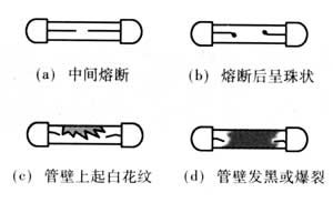 如图10(a)保险丝中间熔断。装上符合规格的保险丝,如再次熔断,则表明机内有局部短路现象或过电流现象。