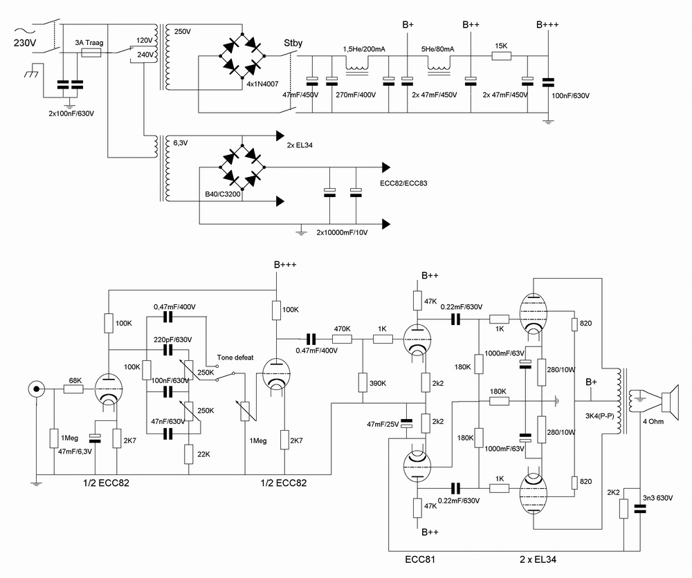 Gitaar ecc82+EL34电子管胆机推挽功放电路图