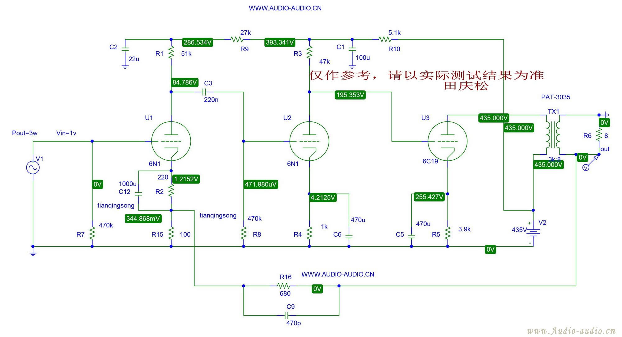 直耦功率级电路中的阴极电阻从来都是耗电和发热的大户,这个可以选用50W的大功率金封电阻来解决,当然温度不小。