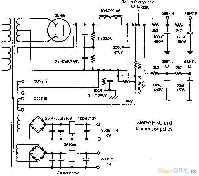 灯丝电压0-15V可调,两个317并联可达4A.B+现用变压器加调压0-450V,准备改用开关电源,电...