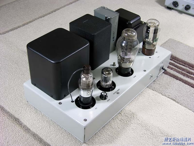 另外,就是对机器的外观还有待改进:一是那个输出变压器的罩壳限于条件没有找到好看的,还有就是一般直棒6SN7位于77300B这两个葫芦型的大个子之间在视觉上显得非常的不协调,看来需要找个也是葫芦型的ECC32