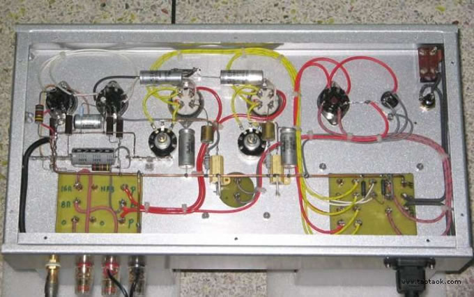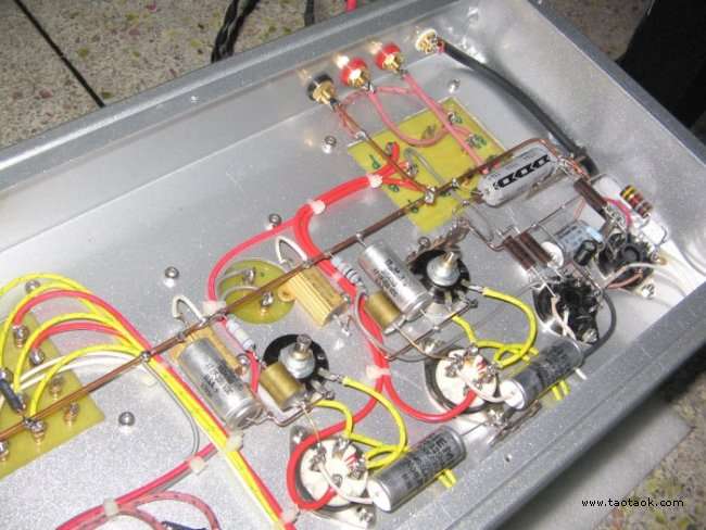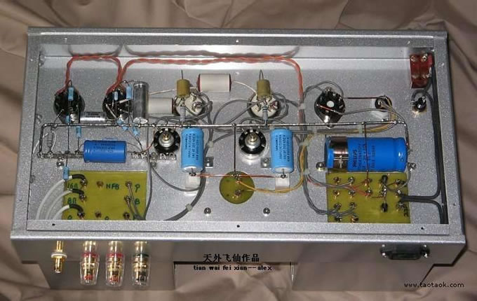 重新布线和升级元件,声音有质的飞跃! 没有修改前的内部: 修改后的内部布局,信噪比大幅提升,贴近喇叭也无噪声. 一直都有改良的念头,结果由于心情和琐事缠身的缘故,拖到现在.趁着心情不错,就着手进行改良.说是改良,其实跟重新焊了一对机子一样,跟以前完全不同的布线和零件.由于老吴的牛牛堪称精品中之精品,所以未改良前已甚具可听性,只是有轻微哼声让人不爽,而看到内部零件也有大把余地升级,所以就准备了一段时日,买了些线材和英国电阻,还有前些时日买的耦合电容,知道现在,手术结束.主要改动是以前的高压先经过2个整流子再胆(5U4G)整流,现在改为纯胆整流,电阻除2A3栅漏电阻未动,其他全部更换,但数值都尊重线路图指示.电容除主滤波未动,其他全部更换,也是按线路标示,两级耦合换为日本Non-inductive 维他命 纯纸介0.1uf电容和德国西门子0.22电容.布线遵循圆弧的走向,用自身弹性互相贴合.考虑到是推挽机,所以大胆的没有将灯丝线绞合,但高压和灯丝是完全分开并远离的,交汇处呈90°角,降干扰降到最低,各级电压都与图纸基本相符.其他就不一一说明了.焊好后与未改动的机子做对比,声音做三级跳,无论线条感,中频质感,层次和低频弹跳力都胜过未改前甚多. 电路图 (责任编辑:admin) |