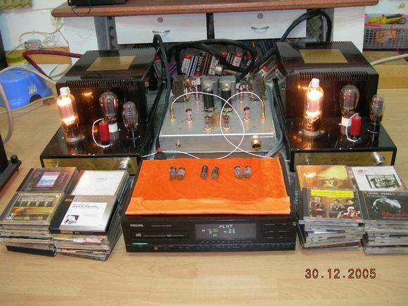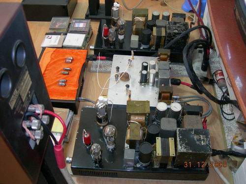 作者:小谷 一, 外观篇 继续采用习惯的2毫米冷轧板交加工厂加工。也继续采用喜爱的进口黑色金属烤漆。变压器,滤波电容,电感等大件元器件均安装于底版之上。然后还是习惯用一大罩将之与电子管分隔。 管位的排列,灯丝,推动,主电源变压器及推动,输出变压器都经优化定夺。现整体外观比较成熟大气也算四平八稳。 二, 电路篇 因在此之前先后制作了多台单端与推挽机一直对单管单端超过30瓦的直热式电路想再试身手。 综合以前211/845的制作经验,参考诸多相关资料最终电路结构为:EF37A+300B+牛推805。其中805级屏压取830,电流110毫安,输出变压器3.5K有反馈绕组;推动级300B屏压取420,电流60毫安。推动变压器为3.5K:2K;电压放大级取典型值。整机取适量负反馈。 三, 元器件篇 805的选择肯定铁屏管好于石墨管。300B为曙光300BS-B无字管。EF37A为菲力谱。 滤波电容采用思碧纸筒;耦合,退耦,电阻等都尽量用好一点。 一对主电源变压器三对电感均为美帝牛,灯丝推动级各用一对拆机牛;推动输出为左氏牛。 机内接线采用西电线,镀银线搭配。接插件CMC. 四, 音效篇 音源:菲力谱850CD机/金诗醉DAX-2转盘解码;数码线超时空The ONE/dcs各一 前级:双单声道12AX7并管(大盾)+12AT7(西门子)并管 信号线CMC 后级:805一对 信号线 超时空The ONE 音箱:ProAc T50 Rogers LS3/5A 电源线从略 软件:Tutti / STOKOWSKI狂想曲/卡拉杨贝多芬第九/安塞美 天方夜潭 谢菲尔德实验室(鼓)/夏韶声/蔡琴老歌/民歌/机遇/央金玛/山西民歌等 试听时不论是大动态的古典还是或幽怨或激情的爵士;无论是质朴悠远的民歌还是精雕细作的流行;不论是hifi感极强的试音碟还是老调新唱的Newage都能让人感到爆膨时电光火石的凌厉动态,当仁不让的大家霸气。音乐的细节,音乐的激情在良好功率的支撑掌控下纤毫必露源源不绝;而浅唱低吟时又是娇媚百态风情万种。音乐的神髓,音乐的步伐在良好的频宽和较好的失真控制支持下轻松自然而毫无侵略性。 经搭配上列不同的音源,不同的音箱,此系统出声已超出小小4/5寸扬声器单体的物理属性。全频均衡,两极延伸自然。其高频段纤巧透明,中频顺滑丰韧,低频干练震撼。整体质感强烈声底健康贵气。对音乐步伐的把握得当动静皆宜。而且最突出的一个优点是它不会在hifi表现淋漓的同时分散对音乐气氛的表达与营造以及所谓音乐味感动你的主次。 当然,限于目前的条件,更限于本人的知识水平如在此大放溢美之词之时贻笑大方万请各位海涵,更诚请诸位批评斧正。 (责任编辑:admin) |