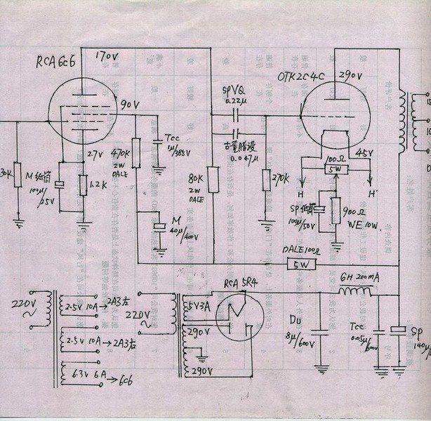 该机为合并单端,用很古老的 RCA 6C6(6J7的前身)一级推动,功率管为54年同期 OTK 2C4C配对管,整流管为50年代全新 RCA 5R4全波整流。 电源高压和灯丝分开,高压牛为英国的290V*2/200MA,灯丝牛为美国著名C公司的2.5V*2/10A,6.3V/6A。2A3 灯丝分别供电第一级波电容用英国大迪8UF/600V,扼流圈为英国双C 6H/240MA,第二级用SP口字牌轴向电解并上一个 TCC 0.05UF/385V的油寝小电容退藕然后由 DALE 100R进行两级高压隔离接下来是 MAORRLY 40UF/450V滤波供给6C6 板极和第二栅极。6C6阴极电阻为AB 1.2K,旁路电容是SP纸筒100UF/25V。2A3的阴极电容是MOARRLY 纸筒 150UF/50V,电阻是 WE 900R 排骨,由于没有 750R 的阻值所以就先用这个了这样一来负偏压为45V,屏流为50MA。 输出牛是用西电WE铁芯由超越音响公司给摇的2.5K/10R,15R。10R是用来推我的3/5A的,15R是留将要购买全频LOWTHER或AER用的。还没吃晚饭就介绍这么多不清楚请看电路图和实物照片。 想说的是 1:藕合电容最后还是换上了SP VQ 0.22UF/1000V,从对情感的挖掘上好于黑寡妇。 2:与我的300B比较,底频的确下潜很好,而有弹性。这可由KK黄录的《将军令》中的打鼓来证明,这非同一般打鼓发烧片,不光鼓打的好,录音录的也好(HABTHER 老板说,没有想到录的这么真!),音乐更好听!还有〈半新旧〉的那张第二首〈红烛泪〉那定位,那质感,那空气感不用多说。难怪HABTHER 老板如是说。听菜琴的第一首1分零6秒的低频,不光有力度,有弹性,而且持续的时间也长! 3:2A3的声音是迷人的声音,是一听上隐的声音,但它是人间的声音。我认为只有300B的高音才能带领我们走出人间,到那不食人间烟火的天国去!听拉宾的琴声就知道了. 管子参数: 电路 参考古董电路1 参考古董电路2:这个是日本鬼子浅野勇重绘美国旧线路 (责任编辑:admin) |