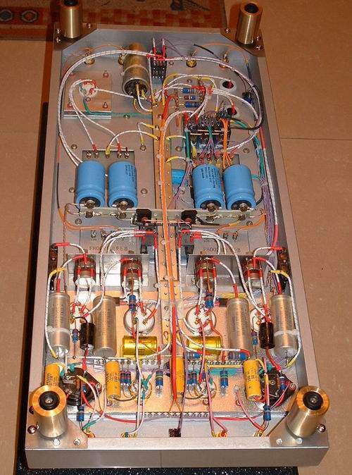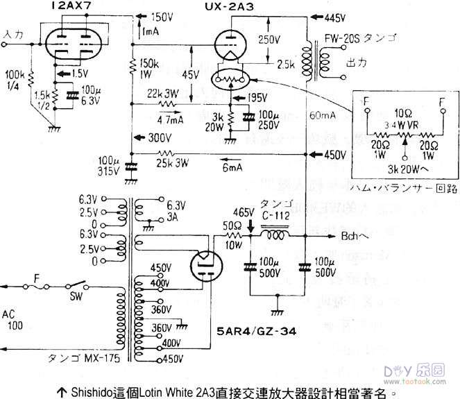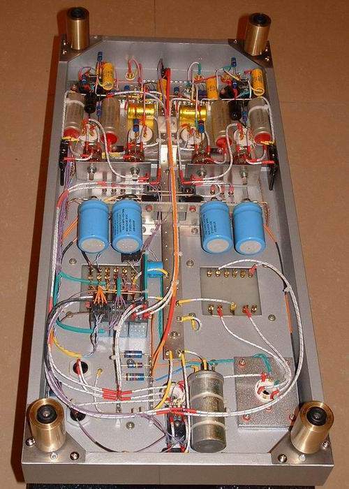 从机壳设计制作到整机焊毕历时近十个月的2A3和300B两用机进入煲机校声阶段了,其中2A3采用了12AX7并管直藕!3OOB由WE31OA推动! 整流目前采用的是JJ的GZ34S,由于次管的内阻甚小,故输出电压较之其它整流管高出不少,幸好本机设计之初采用了高压及灯丝供电两个变压器,而高压变压器之初级又采用了多抽头,故实际调试中各点电压值几乎和原图完全吻合 300b电路使用标准的310a推动电路,2a3的电路使用了流传很广的直接偶合电路,见下图。 (责任编辑:admin) |