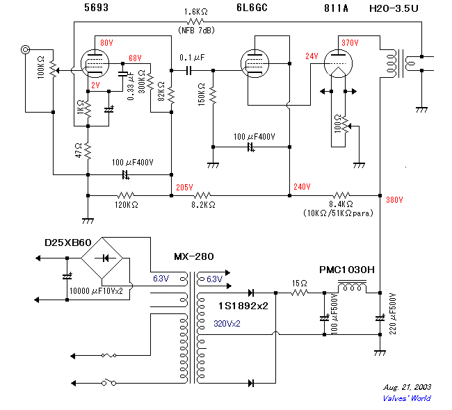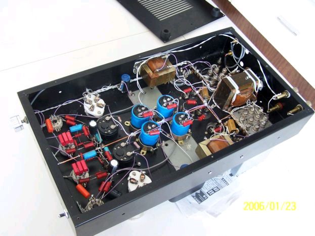 上电路,基本与这个类似,有所改动,推动用6V6,电压提高到500,输出用5K,整流用硅和胆混合桥式 全交流点灯,燥声一个声道5MV,一个6MV 内部图 油罐的容量是24U500V的,2只供2只811,1只供6V6和6J8P,输出牛是C型的 (责任编辑:admin) |