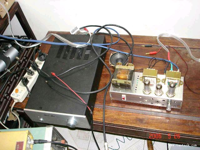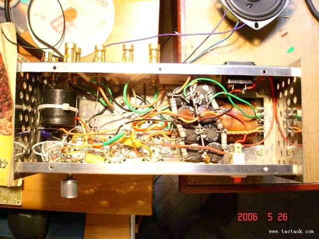 从下午4点做到现在,其中被电了3、4次(电容放电),烧了一个高压电容。真的要小心。万用表也差点烧了。 大概做好了,通上电,测了一下工作点,竟然和电路图上标出的差不多。一放音乐,响了,真神奇啊。 噪音还是有的,我用的灵敏度高的全频,但音乐初听上去不错。 今晚能睡好了。 5月26号 今天整理一下线路,固定好电源电路,但是线还是够乱的。 现在的噪声已经很少的,真幸运啊。可能与变压器有中心抽头有关(高压、灯丝都有抽头) 用《卡门》试一下功放的解析力,发现这部功放的解析力不差,有点出扶意外。乐器的轮廓还算鲜明,响应良好。 牛是成品的曙光牛,成品牛的低频一般是可以的。如果真的有解析力,那是意外之喜。 一直寻找蛋鸡那种蜜糖般甜蜜中带点透明的感觉,低频舒服、高音明亮而不毛躁、清甜的感觉。如果还有一定的解析力,即整个音乐画面更层次分明,那就更好! 听音比较 和前胆后石比较: 1)解析力。6p1比前胆后稍差一点。前胆后石的解析已经是很高的,以前前胆后石和全石机比较过。 2)人声。前胆后石的人声直白一点。可以看出前胆后石的频响宽些。6p1的人声多了一份感情,人声醇厚点。 3)乐器。蛋鸡播乐器是有些特别。蛋鸡多了一层色彩,轮廓感更强。 4)低音。差不多。6p1的低音好似厚点。 5)6p1在声频范围内的能量感强点,前胆后石的能量分布均衡点,但也觉直白。换一种角度是更真实些,更少点印染。很难说谁绝对更好。 现场 试听 电路图 电路接法有些不同。采用典型的何生电位器接法。音场会好,解析力会提高。 (责任编辑:admin) |