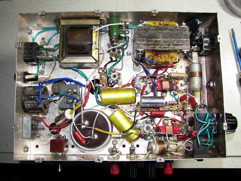 5.1节完工的6j1+6p14单端机,噪音极小,离开音箱10cm处不可闻,感觉6p14的声音很耐听. 换个方向 顶视,机壳是利用一旧扫频仪的底板.上镀银铜板. 线路是按宝尔真的图 内部 (责任编辑:admin) |