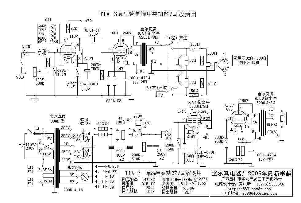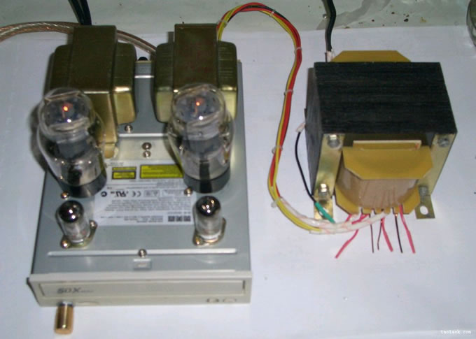 今天没事做了一个超小的单端胆机,效果不错,发给大家看看。机壳也是仿照坛子里使用了废光驱的外壳,只是变压器只好另作外壳了,实在是没有地方放了!不过机壳里还有点地方正好可以放一个石机的音调电路,有时间准备做一个放进去 这是参考的电路图,第一级用6J1,电流调在4mA,偏压1.2V;第二级用6P6P电流调在45mA,偏压15V 质还是不错的,比前段时间装的6P3P推挽要好听一点,就是功率要小一点,不过本人的房间小,也已经够用的了。用示波器测波形也不错,音量开到最大也基本上听不到噪音,后来将6P6P换成6P3P感觉低音要差一点,听感和6P3P推挽差不多 (责任编辑:admin) |