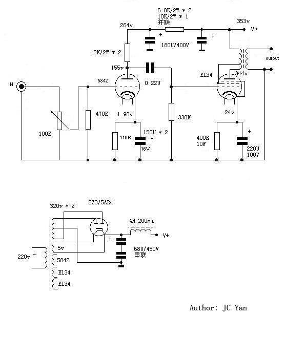 电路图 估计这个电路只有我一个人做过,不过声音还真不错,特别是高频,低频下潜也好