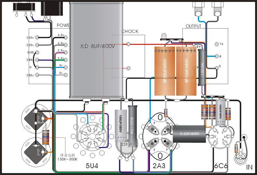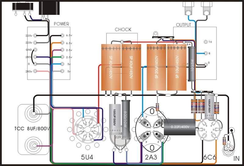 为一位网友画的步线图,我用的是CDR9软件画的~~~ 布局 线路~~ 实物布局中。电容太多,排位困难~~图上两个电解声音一般,还是建议用TCC油罐做第一级~~。 大D油罐8UF大D啡色纸筒40UFX2(轴向引脚)压降电阻20UF(轴向引脚)廉栅电阻10UF(轴向引脚),这样配置