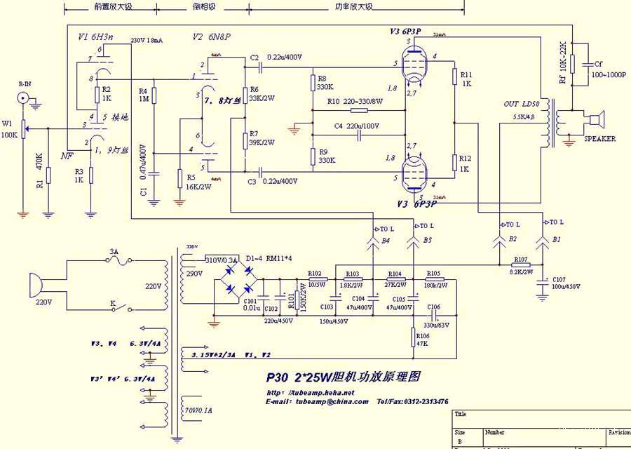 6h3+6n8p+6p3p(6l6) P30 2*25W推挽胆机功放制作