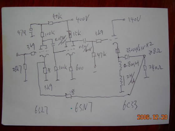 因没米买贵价高品质输出牛,只好做了一台6C33的OTL机机. 经过二天的调试,总结起来就是:声音非常温暖和透明干净,人声结像不错,细节丰富,音场定位非常好,深度和宽度.......二端廷伸非常好 缺点:效率低了点,输出功率小(若6W) ![]() ![]() 单管阴极输出 ![]() 最好能推16--32欧的高灵敏度的喇叭,.我试机时用了一对6欧92DB的8寸箱都可以 内部用料图 ![]() 电路图 ![]() (责任编辑:admin) |
