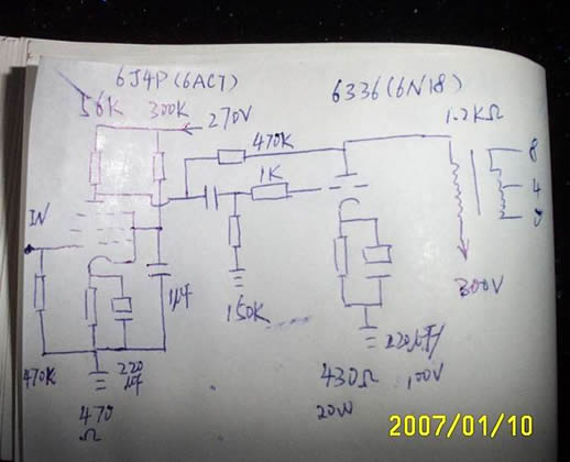 别人玩玩大管,我玩小管.6N18(6336)单端 用料是过得去! ![]() ![]() 屏阻用27K的话本级增益小了点,470K是用来调音的(是本级反馈),看个人喜好.阴电容用22U也可以,我的是随手头上的元件来用的,6336的阴电容的话就根据输出牛的电感量来定夺和自己的箱条件选取. ![]() 电路图 ![]() (责任编辑:admin) |