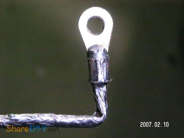 粗铜找了很久也没有找到,无耐只能自己做了,就用电源线拆下来的屏蔽网线,先在里面放条焊丝,然后用烙铁加热