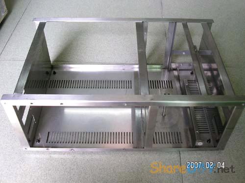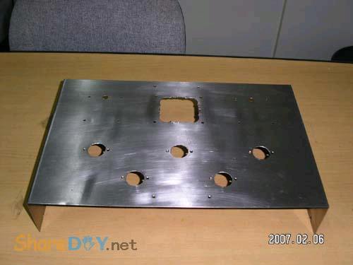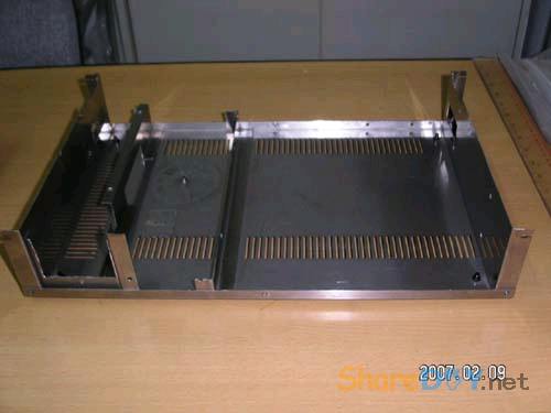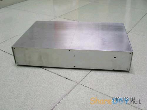 这机器原是德国制造的,全机箱除了前面板外全是不锈钢,在公司里被遗弃几年了,用湿布擦一擦还是亮晶晶的,果然是好材料。机箱长宽都合适,就是高度太高了,一半的高度正好,于是把前面板两等分,把高度减少一半。经过一番艰苦的现代化改造后,终于将它驯服了,改造后样子还是令人蛮喜欢的。唯一不足的是前面板上因为原机器留下几个洞,很不雅。没办法了,只能这样了。