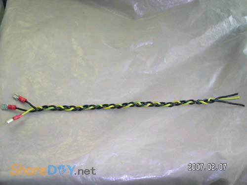 我自己做的三芯绞线用在220V电源上,绞合起来可以减少自身干扰,这让我想起小时候编竹苗的情景……