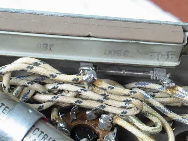這對西電124B來機時已報兩聲道音量差別大,在示波器觀察可見正弦波嚴重失真圖(10) “A”, “B”是另外正常的狀態的一聲道。在量度失真的一聲道時,發現V1和V2這兩支6J7的屏壓祇有DC 10~15V,而簾柵極則出現異常的,竟有DC 250V。在這情況,V1和V2是失去正常的放大功能,是因供應簾柵極的分流電阻R10的3.5K電阻已燒毀,而導到R15的13K電阻失去分流電壓的作用,因而將250V有多的直流電壓直接傳送到這兩支6J7的簾柵極處,於是V1和V2產生大電流,而將屏極的電壓拖跨了。圖(11)是一支三合一的組合繞線電阻,其中一組3.5K已失效,當然要找一支10W的3.5K線電阻替代,幸好筆者剛有一支很古老的3.5K線電阻,而且無數值顯示、無保護漆包裝、祇有電阻線坦蕩蕩的直接繞上陶磁通表面;這獨一無二的靚聲電阻就好像等侯這124B的來臨,那 “老味”外形與質感,自然是襯到絕,這纖巧而一絲不掛的老繞線電阻銲接上原有的組合電阻上,是不易辨察這電阻是經修理後「死去活來」的。