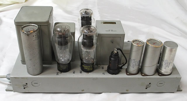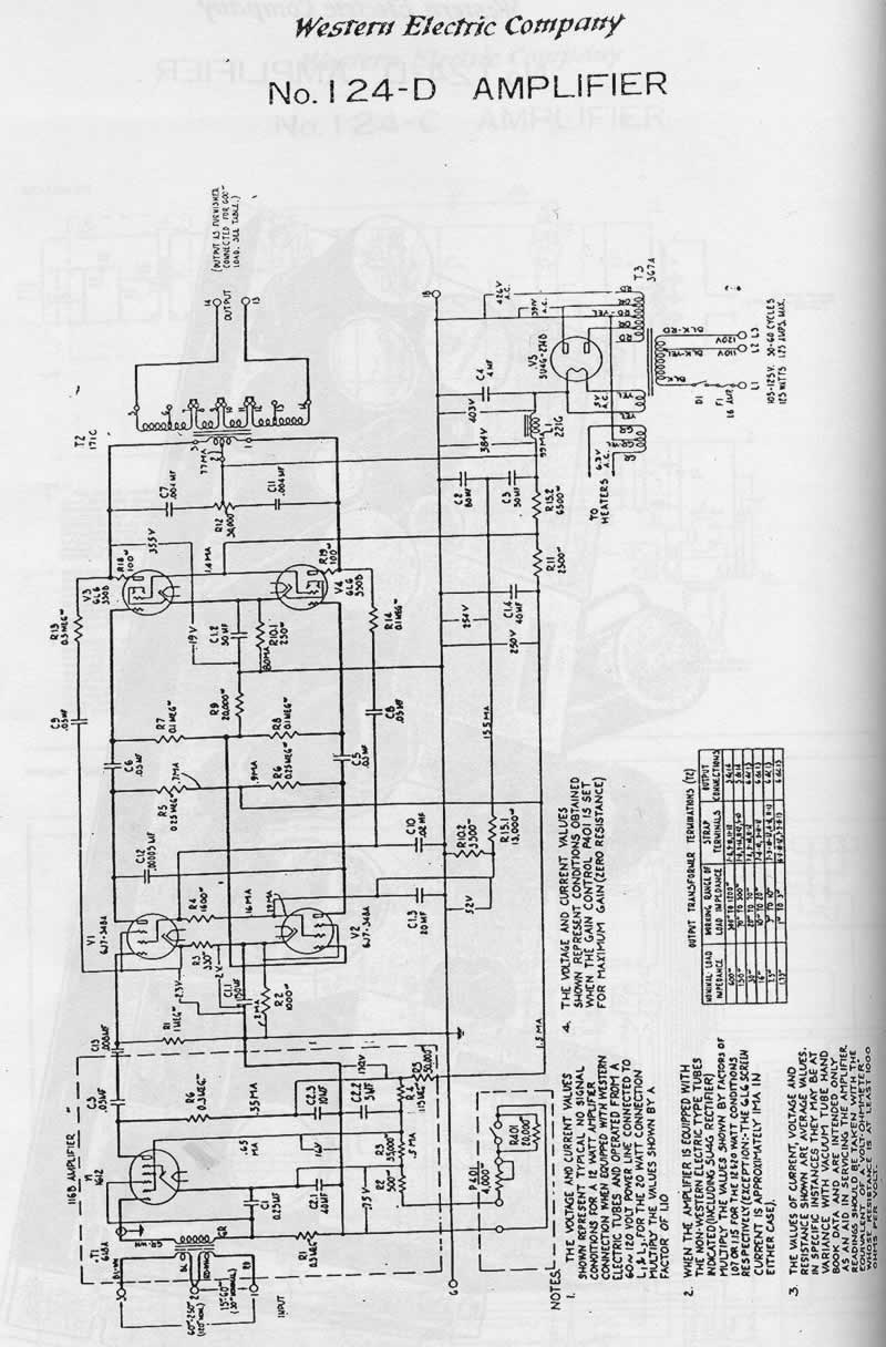 西電124B每道最高祇有20watt,若匹配古董高率喇叭,例如:Jensen、ALTEC、西電、天朗……等鋼磁或勵磁喇叭,則更盡顯124B的攝人魅力,在此情景的配搭;相比那身懷力拔山兮氣蓋世的馬蘭士9來說,西電124B就佔了些有利優勢,馬蘭士9祇可屈就充作守門大將軍好了!這西電124B主要放大線路是相當簡潔,若撇除前面低電平放大部份(可作咪放大),祇有兩支348A/6J7擔任輸入放大兼倒相管,另外的兩支350B/6L6就是功率管,還有一支274B/5U4整流管。每聲道共有五支膽,可算是最簡單,.亦附合Simple is the Best的道理,優點是失真和噪聲較低。