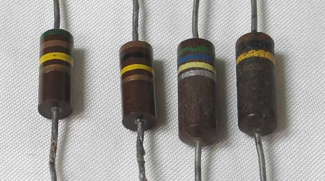 通常兩台單聲道的老機,可能!原是一對或它們本來是素未謀面的;在偶然或有心人的撮合而成一對者,往往內部的衰老狀態有差異、或用料原先已是不同;再者可能經中途修理而零件不配對的機種,是十常八九的。圖(12)其中一聲道的電阻,圖左---2支AB碳質電阻,而另外圖右邊兩支是IRC。雖它們同是碳質電阻,但因這兩廠的選用物料有不同,所以這兩款的老碳質電阻聲音是有很大分別的。據筆者經驗所得,古董西電的擴音機多數是使用IRC或Ohmite的特殊電阻,這電阻表面粗糙,而兩側是有一邊的夾合接縫。為了兩聲道的配對與及原裝料還原起見,筆者祇有翻箱倒篋的找尋兩支這特殊IRC電阻,為了成全西電124B這犧牲小我完成大我的精神,見義勇為也!