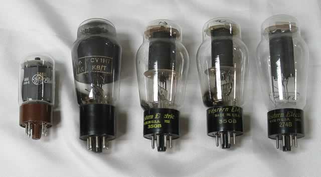 如果西電124B用6L6或6L6GA作功率管時,負輸出功率祗有12W,電源牛高壓線圈應接395V。若用西電原廠的350B,又將電源牛高壓線圈組接426V時;那麼,這後級就可以有20W的輸出功率。功率管350B跟6L6的阻抗和特性是相近;但350B可承受的功率量是較一般的6L6為大。圖(9) 6L6系列,包括:5881、6L6、350B,古董西電350B的名氣、身份價值超然,是遠遠超越一般的6L6或5881。
