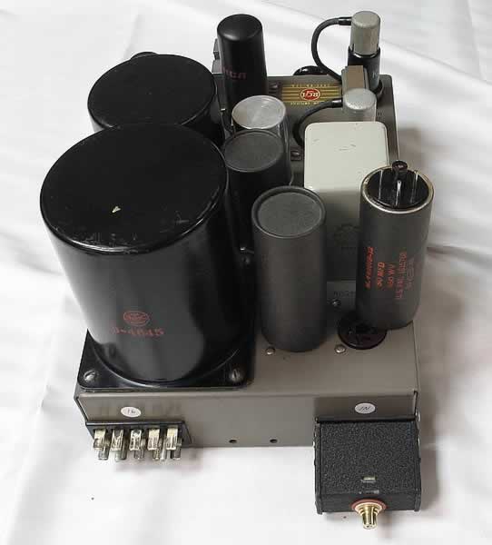 特別要留意的是功率管的陰極電阻390 ohm是2w的AB碳阻,出現了異常的變色現象;這是看得出設計者有點疏忽,在這位置使用通常最好用5W至10W才可保証長時間使用時仍不至於變值;不過為了原裝起見,筆者也願忠於原著,而更換全新兼且配對的2W AB碳阻。另有一點要嘉獎的是機頂所有漏波Twist Lok Cap電容,是插座式的類型,這更符合專業機的高信賴和維修快的條件,這就算是最快而方便的修理程序,圖(6)四支是插座式電容,最右邊的一支是一般的 twist-lot電容,圖(6a)電容是可輕易拔出。還有這機的輸入訊號和輸出喇叭線接端及電源輸入,全都是配以原廠的插作連線,所以亦很容易在這鑑聽體系中,容易更換整台BA-13A。