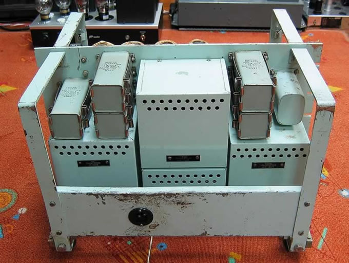 筆者現在介紹的是一對50W單聲道用四支KT-66的專業擴音體系,就以GEC為名Audio Frequency Equipment Series AF-100 / General Electric Co。圖(1, 1A) ,外型就似兩台四分三匹窗口的冷氣機,其重量也差不多啊!就以表面眼見的五隻油罐電容,就令「土砲友」羡慕不已了圖(2)。