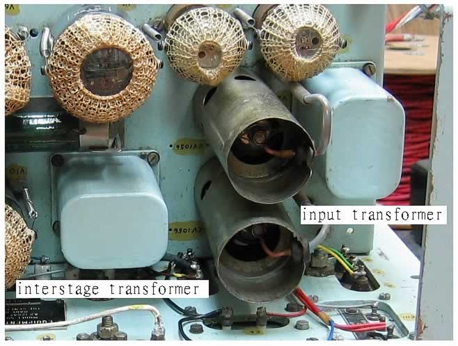 不能不提的是「高信賴」的專業儀器,往往會將電源牛部份拆分為高壓部份和燈絲部份;分成兩隻獨立的電源牛,因高壓電源部份和低壓電源部份的分拆,可減少互相干擾而令電壓供應更穩定,發熱量減少和減低火牛高壓跳火所產生短路現象,這是不惜工本的製作。還有的是這兩台恐龍時代(未進入文明商業招徠路線的原始時期) 的「洪荒猛獸」AF-100,是有輸入牛和推動「交連牛」的,正是其心臟的命脈圖(3) ,(3a),可算是毫不吝嗇「玩到盡」的大製作。輸入牛是咪放大之用,連接輸入的咪Jack插座,即是可不用前級(前置)就可以獨立工作的擴音體系,若我們將前置直接輸入到此機的咪Jack處,音量相當大,甚至無法控制前置的Volume,此時就算將前置Volume調至最細,它也會將前置「本機」的噪音誇張的放大,仿如傾盆大雨般的聲音從喇叭發出。可能有某部份的讀者未明之處是,單以前置來說,音量控制器Volume是在前置放大部份之先,即使就是Volume調至最細時,其實前置放大的電子電路是與後級直接相連;而每份放大的電子電路是有一定的噪音,若太高增益的後級會毫不保留的將前置的噪聲放大。