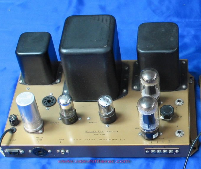 另外 Dynaco 、 EICO 、 Heathkit---- 等,當年這廠家主要是以套件式出售。筆者所指 “ 有潛質 ” 的古董膽機,很多時它們在健康狀態良好時的售價,差不多接近拆散零件計算的總值;就當作是自砌土砲買散料的心態看待,也不為過。這類機先天所蘊藏的潛質是靚聲的輸出牛、 choke 扼流圖和電源牛。在方便之處看,例如零件佈局、接地迴路、機殼的處理 ...... 等都是廠家早己為你而做足功夫了,免了土砲初哥,因以上幾點所帶來的煩惱;正所謂「萬事起頭難」。我們可不須理會此等機的二手炒賣價值,放膽的為它按理依症下藥,去蕪存青,每當領略到這機施過小手術後,能釋放令人嗟異的優厚潛質,所帶來的驚喜和滿足感與花得起錢買到心頭好的名機有所不同。 筆者向大家介紹的一對 Heathkit Model W4-AM 古董膽機後級 圖 (1) ,是約六零年代美國出品,當年 Heathkit 的經營方式跟 Dynaco 相同之處是以套件方式出售, Heathkit 的後級大多採用「威廉遜式」 Williamson-type 設計線路;各不同型號的劃分似乎是取決於使用不同的輸出牛,例如: Peerless 、 Acrosoud 、 Chicago---- 等,雖然同一線路結構,但因採用輸出牛不同而產生不同的聲音表現,看來 Heathkit 廠家提供這玩法, “ 玩味 ” 更引人入勝。 為何這類的套件機的聲音表現或市場價值難以跟名廠機爭一日之長短?歸納因素有三:第 (1) 因以套件低廉價錢出售而張貨就價,用了較低水準的交連電容。第 (2) 因銷售對象是初學者,往往我們現今接觸到的 kit 機,其銲製技術良莠不齊。第 (3) 為了減低技術測試和調校所出現不穩定的可能性,所以廠方作出太保守的預設,例如抑制高類的電路和高度的負回輸。我們就針對著以上三點來依症下藥將這台 Heathkit 施行手術,可將它化腐朽為神奇。 圖(1) 圖(2)