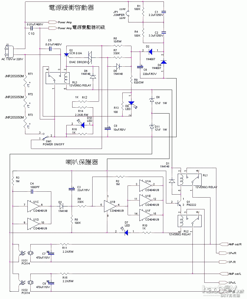 【原本「緩衝啟動、喇叭保護器」的電路圖】