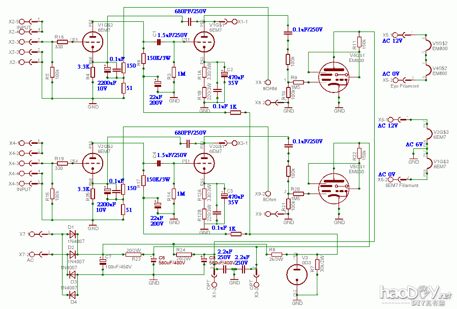 燈絲緩衝、高壓緩送的6EM7+em800胆机真空管後級