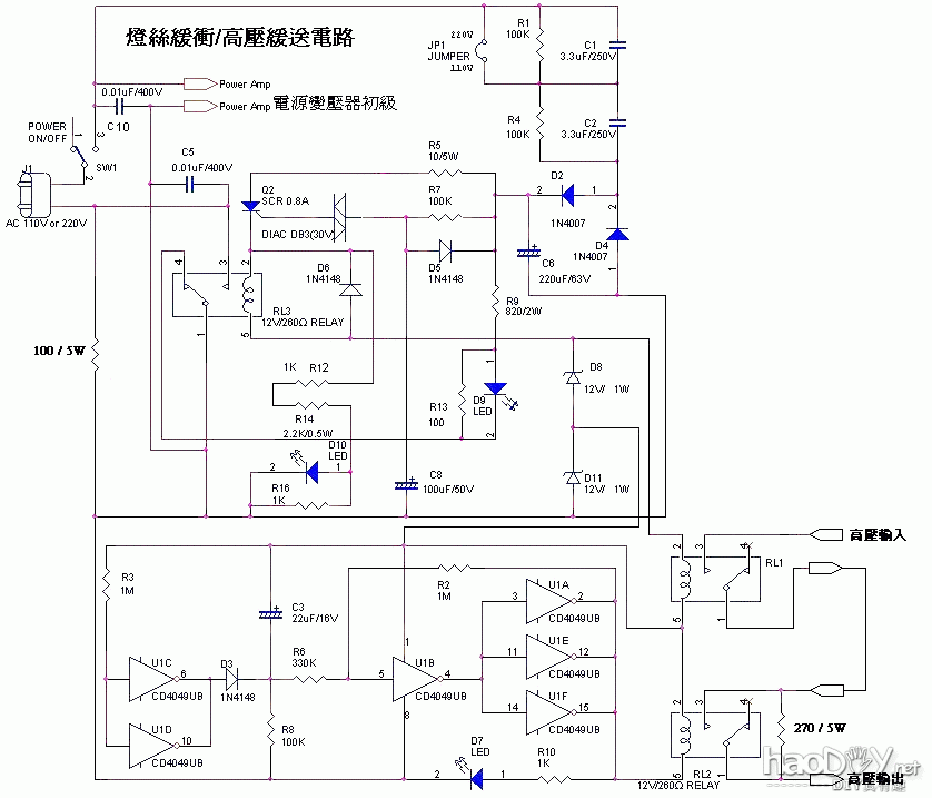 真空管放大器高壓緩送的部分由原本「緩衝啟動、喇叭保護器」中的喇叭保護器來負