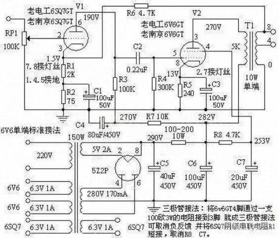 版主发言了,上个电路图吧6sq7+6V6(6p6p)单端胆机制作过程