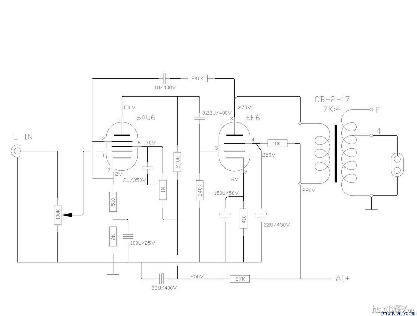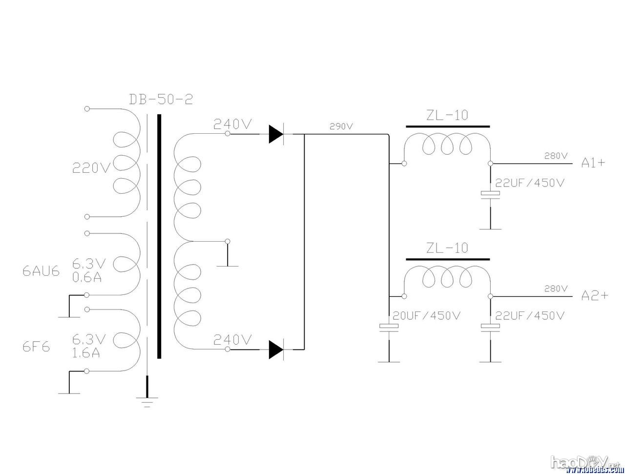 CB-2-17输出牛的初级阻抗(7K)及电源牛高压绕组的参数(全波240V\DC 75MA),选用6F6作为功率输出管,晶体管全波整流,现有两个扼流圈,两声道则分别滤波、退耦;