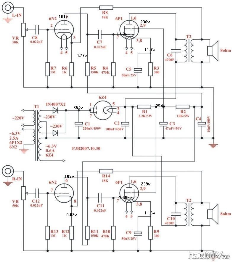其实像6p1这种小单端,用老收音机里的50w电源牛基本够用,那个年代的电源牛用料扎实,做工不偷懒,保险系数大,而且这个电路的整流是用晶体二极管,6z4做胆缓冲,只是电源余量小点 (责任编辑:admin) |