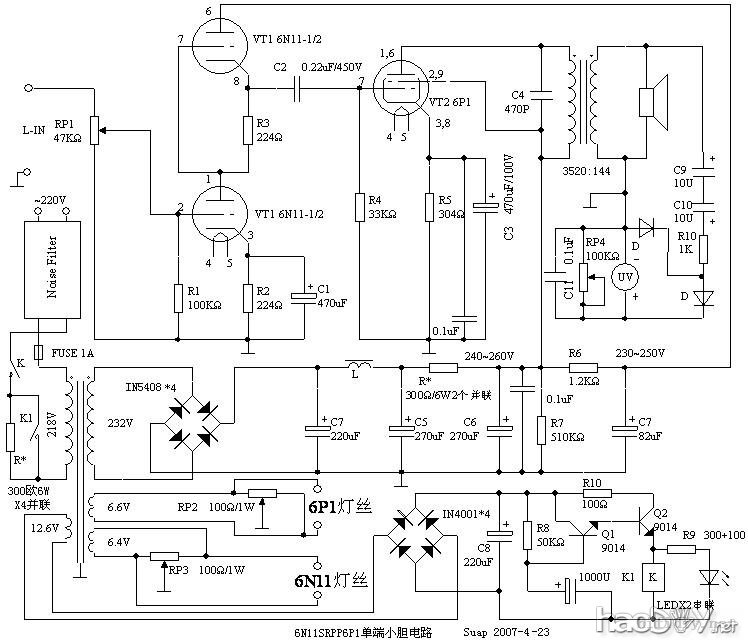 4、修改过的电路图。 6N11的0.1U忘记焊了……就算了。