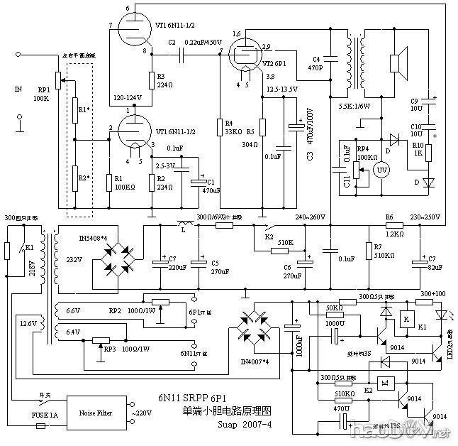 2、高压延时问题并没有完全解决,这里只能用双重延迟来解决。一个是为了灯丝,一个是为了高压。当然,胆整流的话可以解决高压的延迟。