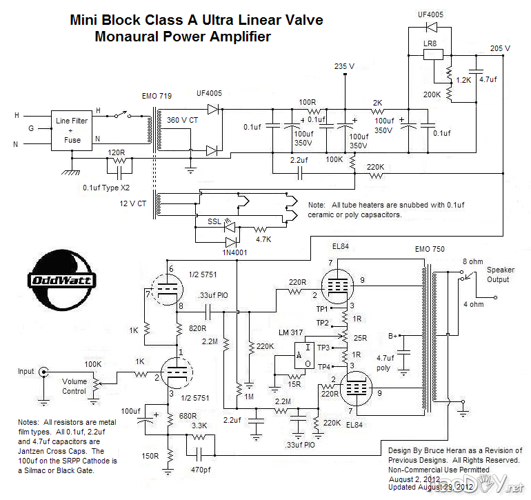 阀放大器可以采购的零件从零件快速,MCM电子和管站之间的人。对于额外的的阀门放大器的设计和施工技巧,请参阅我的博客条目约真空管放大器的设计和施工技巧和建议。另外,我也发布了一个电子管放大器配线颜色代码的一些建议。