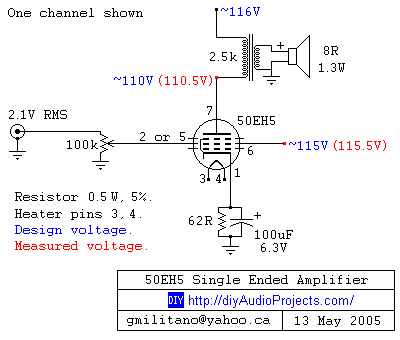 (SE)典型工作原理图 与负载电阻3K虽然的50EH5的单端的典型操作的示意图示出了输出变压器,50EH5数据表表明2.5到3K的负载电阻是适用于单端操作。